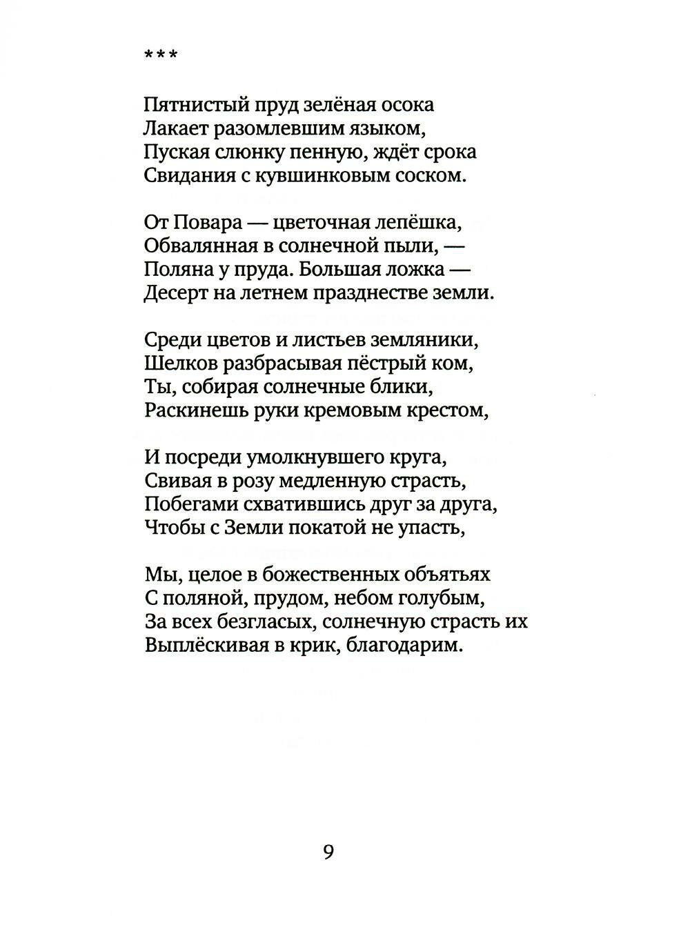 В завершение книги несколько прозаических эссе - остроумных, афористичных, полных точных наблюдений. Такое, к примеру, суждение: "Русская поэзия - это локальное и удивительное для расхлябанного русского мира чудо упорядоченности и место чудотворной победы русского языка над русским народом. Победы, которую приветствует побеждённый".