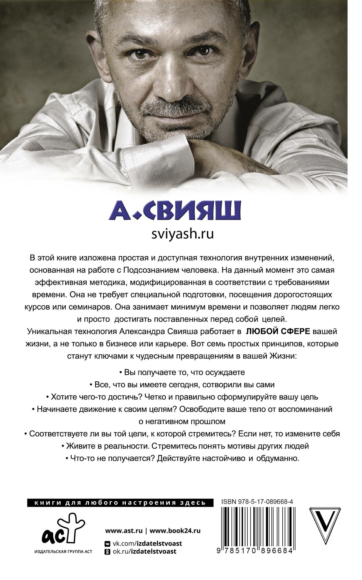 Уникальная технология Александра Свияша работает в любой сфере вашей жизни, а не только в бизнесе или карьере. Специально для тех, кто ценит свое время и не желает откладывать изменения "на потом", книга укомплектована авторским аудиодиском с позитивными настроями и удобным дневником, который поможет вам объективно оценивать свои достижения, радоваться победам и правильно относиться к возможным неудачам, чтобы не сбиться с выбранного пути позитивных изменений.
