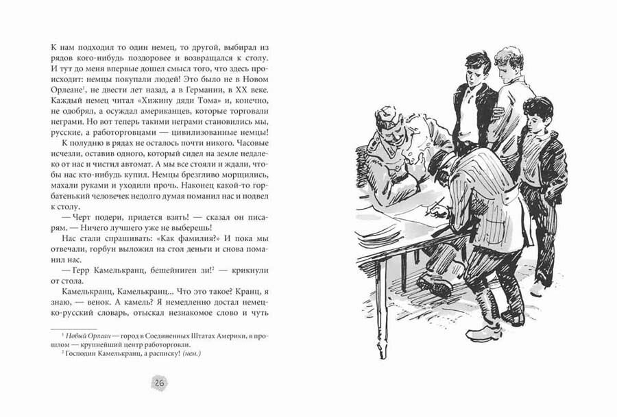 Через день мы снова ходили с Левкой по городу. И вез-де на зданиях читали непонятные нам, чужие, враждебные надписи. Длинная очередь арестованных стояла около комендатуры, как называлась теперь бывшая столовая № 17. Четверо конвоиров в черной форме, с прижатыми