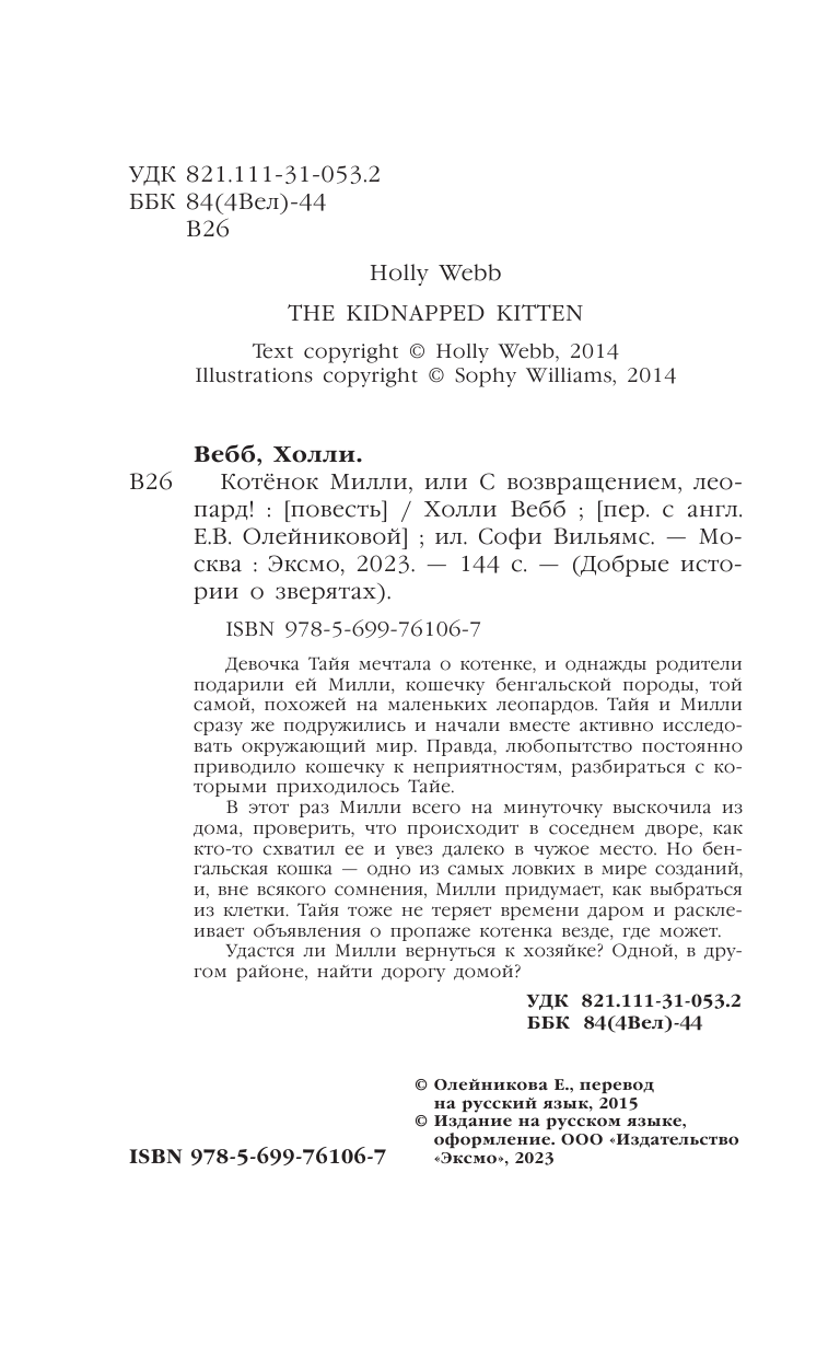 Холли Вебб Котенок Милли или с возращением, леопард!
