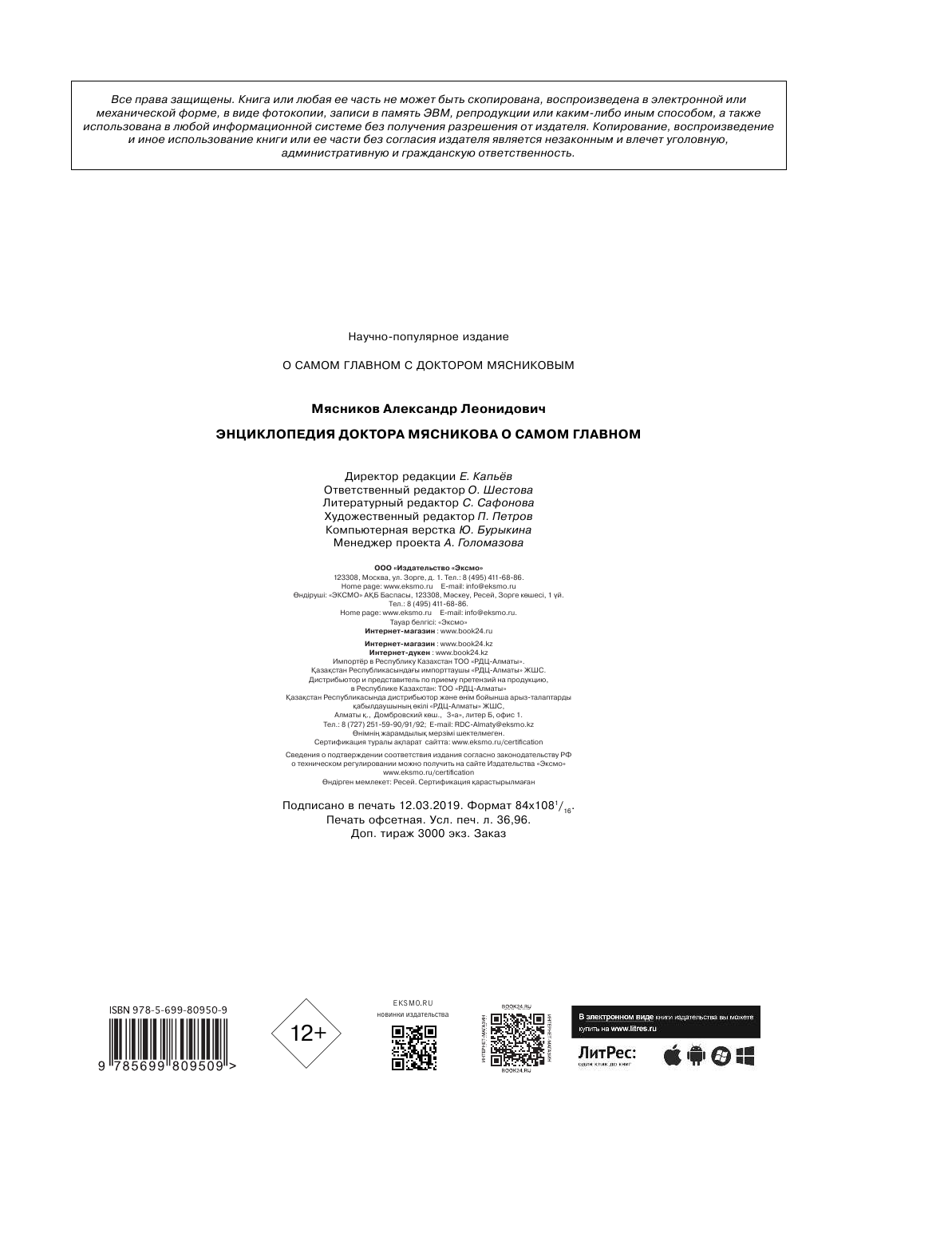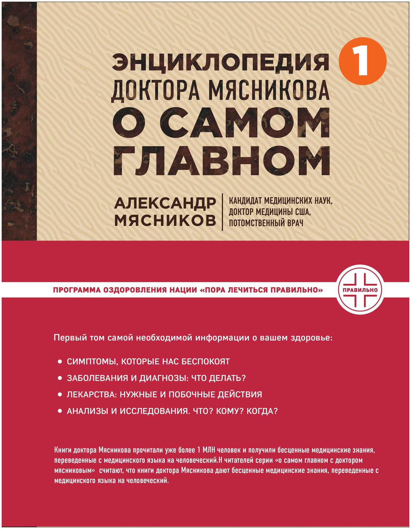 Книги доктора Мясникова прочитали уже более 1 млн. человек и получили бесценные медицинские знания, переведенные с медицинского языка на человеческий. В энциклопедию вошла обновленная информации из его бестселлеров "Как жить дольше 50 лет: откровенный разговор с врачом о лекарствах и медицине", "О самом главном с доктором Мясниковым", "Русская рулетка: как выжить в борьбе за собственное здоровье" и "Ржавчина": что делать, чтобы сердце не болело".