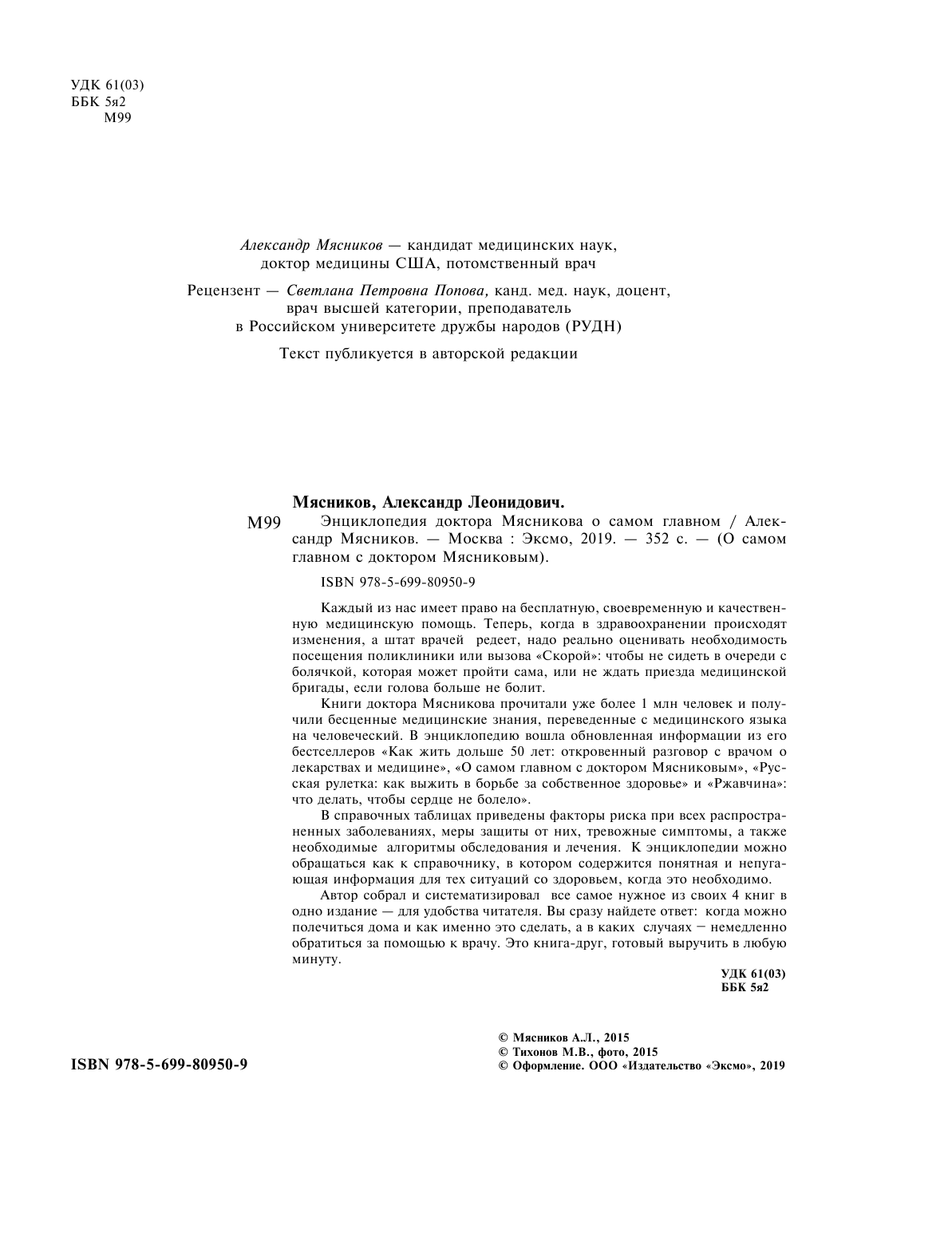 Энциклопедия доктора Мясникова о самом главном (Александр Леонидович Мясников); Эксмо, 2020