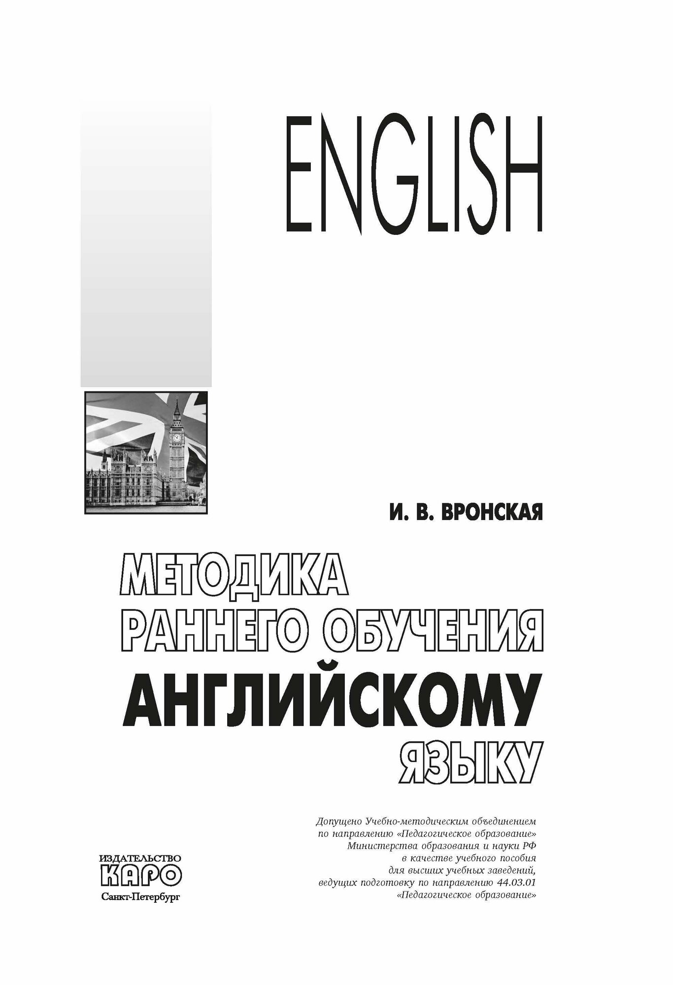 Методика раннего обучения английскому языку (Вронская Ирина Владимировна); КАРО, 2015