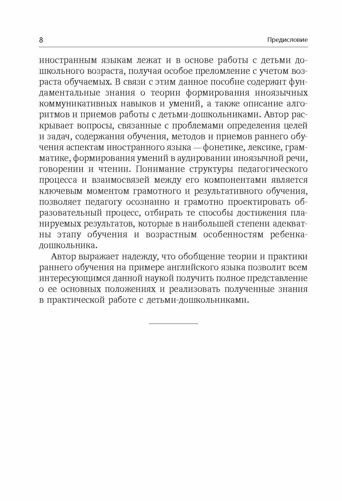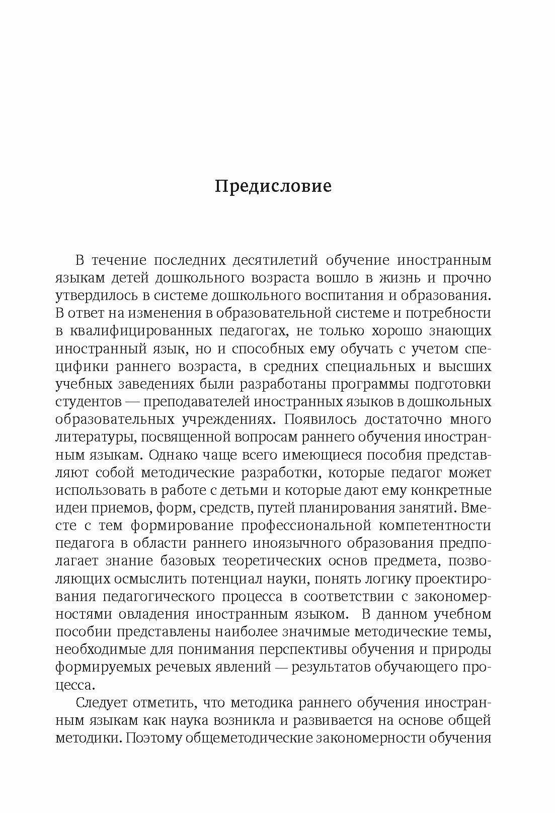 Учебное пособие призвано обеспечить становление профессиональной компетенции педагога в области раннего обучения иностранным языкам и адресовано преподавателям, студентам педагогических и лингвистических университетов, факультетов иностранных языков, средних специальных учебных заведений, учителям английского языка в дошкольных образовательных учреждениях.