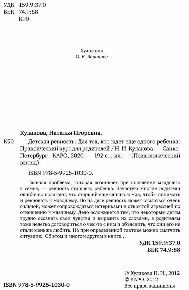 Детская ревность. Для тех кто ждет еще одного ребенка. Практический курс для родителей (Кулакова Наталья Игоревна); Каро, 2017