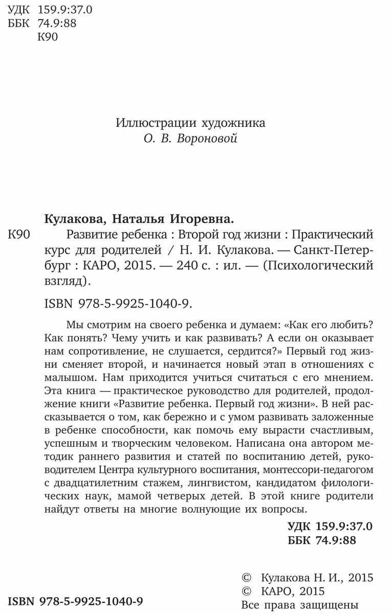Развитие ребенка. Второй год жизни. Практический курс для родителей (Наталья Кулакова); КАРО, 2015