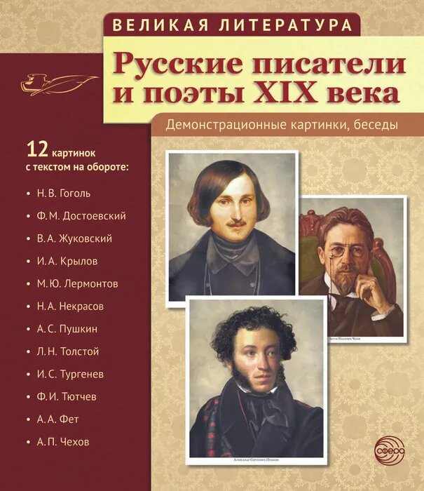 Русские писатели и поэты XIX века. (12 демонстрационных карт) (Лебедева А. (ред.-сост.)); Творческий центр Сфера Издательство, 2015