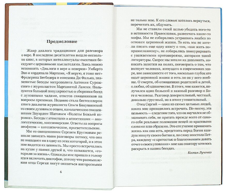 В этом смысле я получила грандиозный подарок. В издательстве «Никея» вышла книга из серии «Открытый разговор журналиста и священника» «Движение к небу». Ксения Лученко говорила с Сергей Круглов за меня. Оглушительно то, что захвачены те сложные моменты, те неясности, те проблемы и вопросы, которые меня волнуют также, как ее. Сидят два человека, пьют чай, много вечеров и обсуждают. Не свод православных правил, не каноны или образцы «православного» поведения, никого не корят и ничем не бравируют, но открывают такие близкие и непростые темы. Тем языком, каким говорю я и мои близкие.