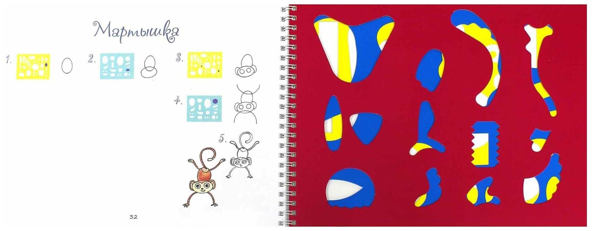 Шаблоны выполнены из плотного картона и закреплены на спирали в конце книги.
