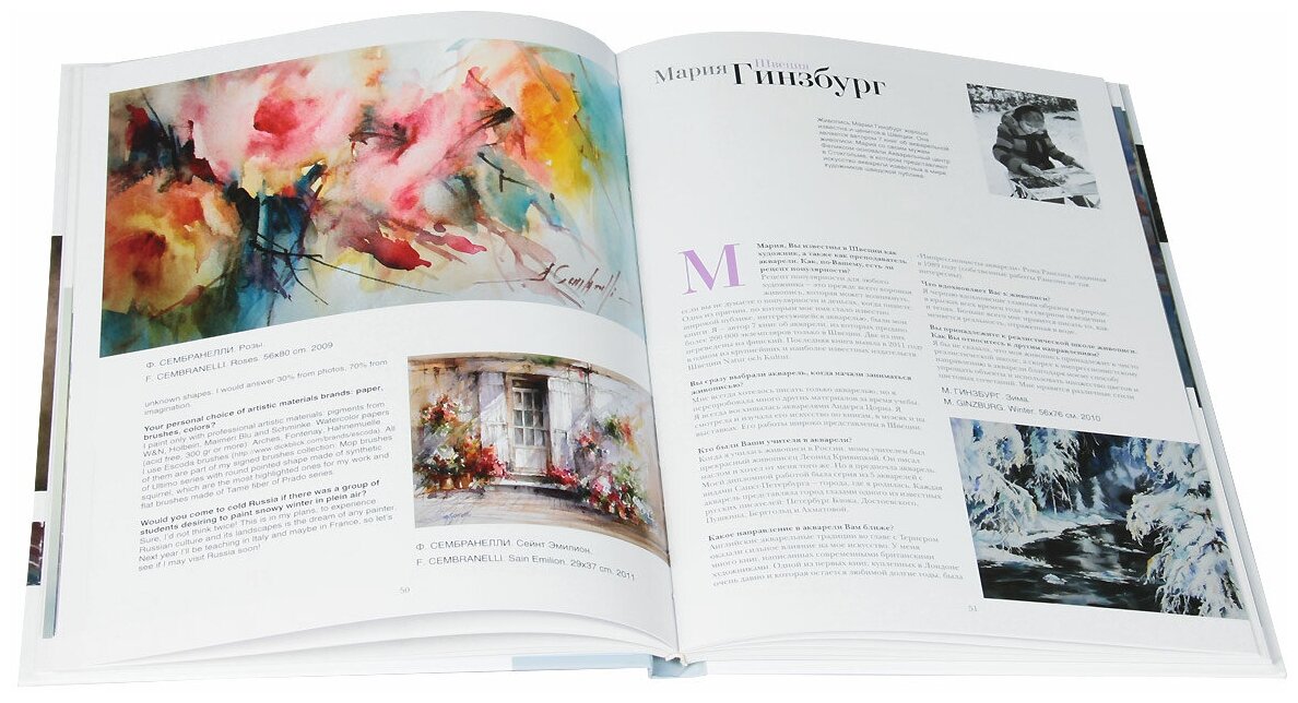Отличная книга. Рекомендую всем интересующимся акварелью.Качественные иллюстрации, демонстрирующие различные техники работы с акварелью. Интересные интервью с художниками, такими разными и по манере письма, и по отношению к живописи акварелью. Купила книгу совсем недавно, периодически открываю и пересматриваю с удовольствием иллюстрации.