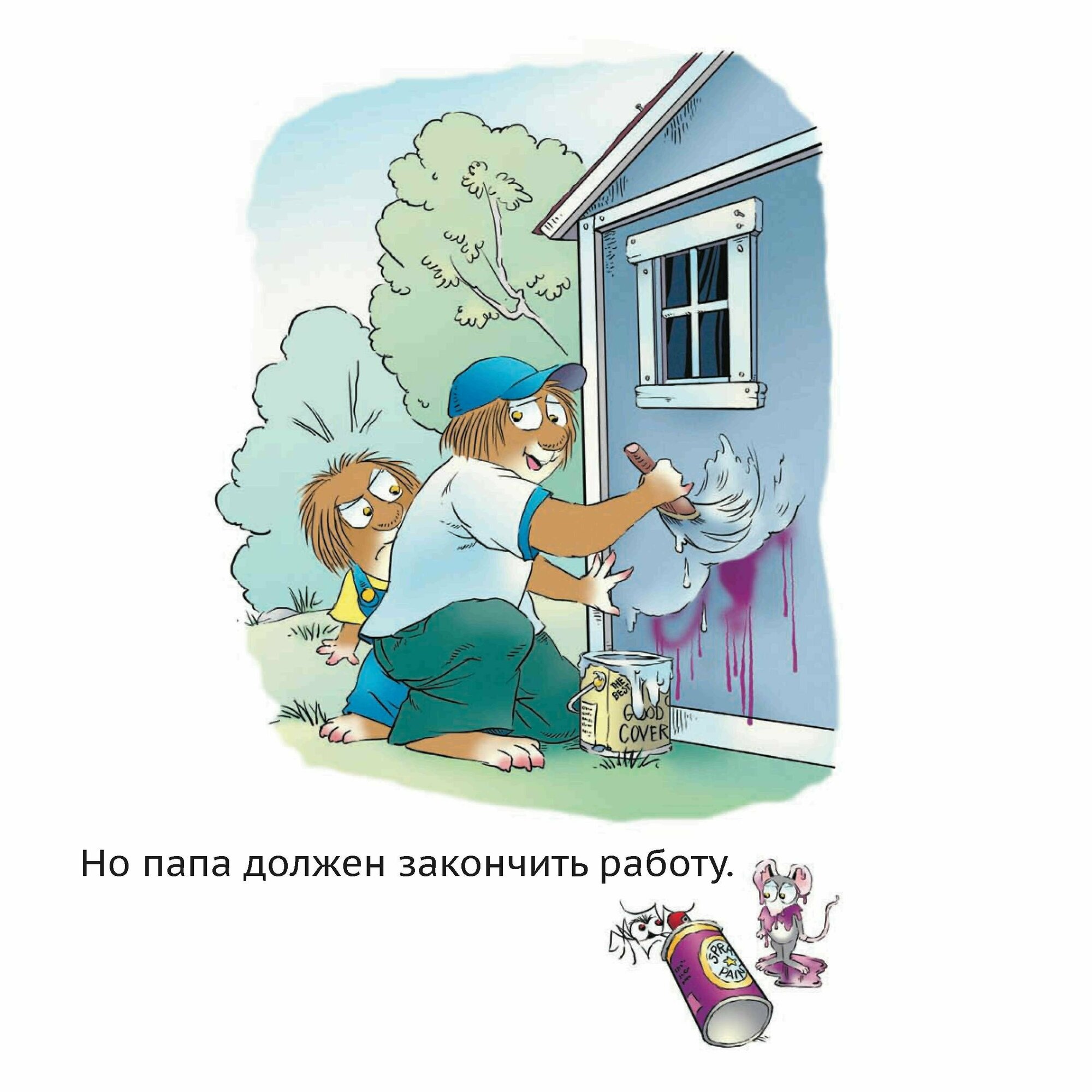 В этой книжке Литтл Криттер помогает папе по хозяйству. Ведь он уже всё умеет - и дом покрасить, и траву