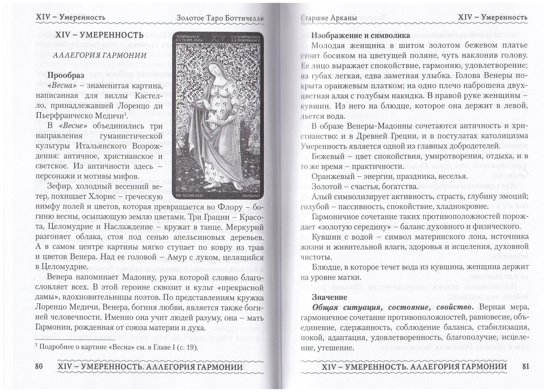 + Подробные описания картин и истории их создания, исторические сведения -- к каждому аркану. Автор проделала большую работу, нет воды и отсебятины. Книга полезна не только обладателям этой колоды, но и всем, кто интересуется биографией и творчеством Боттичелли.