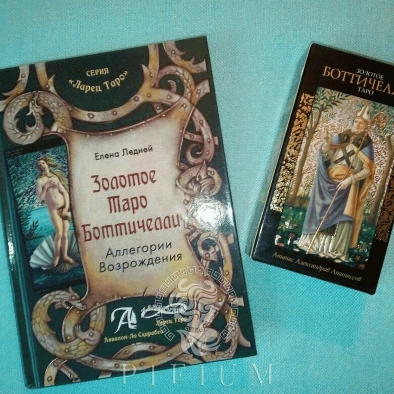 Золотое Таро Боттичелли безусловно заслуживает внимания, но многие карты не укладываются в значения Уэйтовской традиции, и качественно проработать колоду самостоятельно довольно тяжелая задача, если же Вы не знаток полотен Сандро Боттичелли. В противном случае искать информацию о каждой картине довольно затруднительно, на это уйдет очень много времени. Настоящий спец своего дела Елена Ледней замечательно справилась с этой задачей. Она изложила в своем методическом пособии максимально развернутую информацию о прообразах картин, в кратце, но довольно информативно рассказала биографию самого Боттичелли, а трактовка карт, описанная в книге, разделенная на множество сфер, выше всяких похвал. Никакой отсебятины и воды, все по существу. В пособии Вы так же найдете несколько раскладов и приложение Произведения Сандро Боттичелли, использованные при создании колоды. Автор углубляется в тему материнства и родов по понятной причине, - в колоде много изображений Мадонн, которых так любил художник. Автор Книги Елена Ледней, написавшая так же методическое пособие по Таро Казановы, является кандидатом филологических наук и автором 12-ти научных работ. Довольно известный и уважаемый таролог из Одессы.