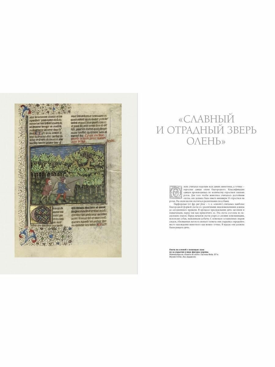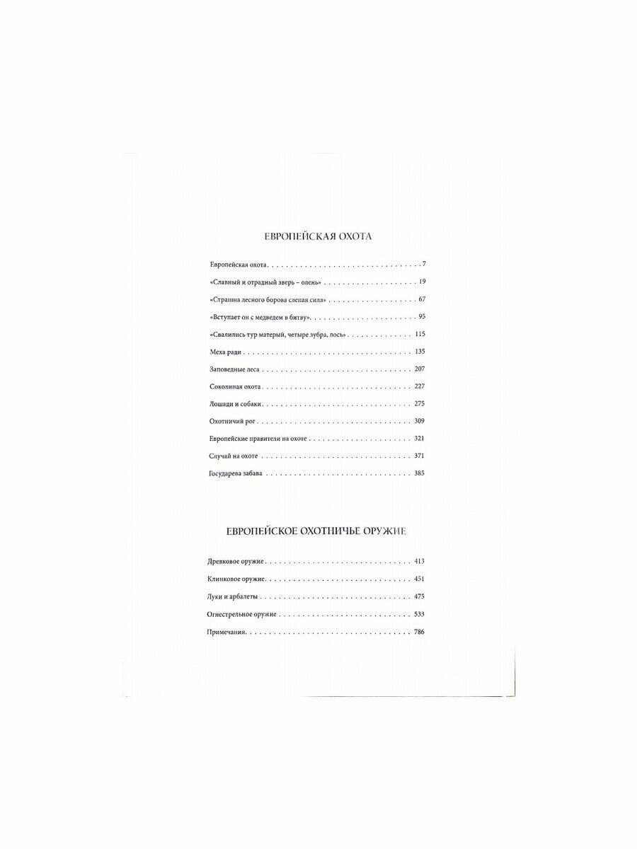 Книга посвящена истории охоты и охотничьего оружия в странах Европы от раннего Средневековья до эпохи Просвещения. В первой части рассказывается о способах охоты на различных животных, об охотничьих собаках, лошадях, ловчих птицах, традициях и обычаях охоты. Особое внимание уделено придворным охотам королей, царей, а также охотничьим увлечения аристократии. В книге приведены трагические, забавные и судьбоносные случаи, произошедшие во время этих охот.