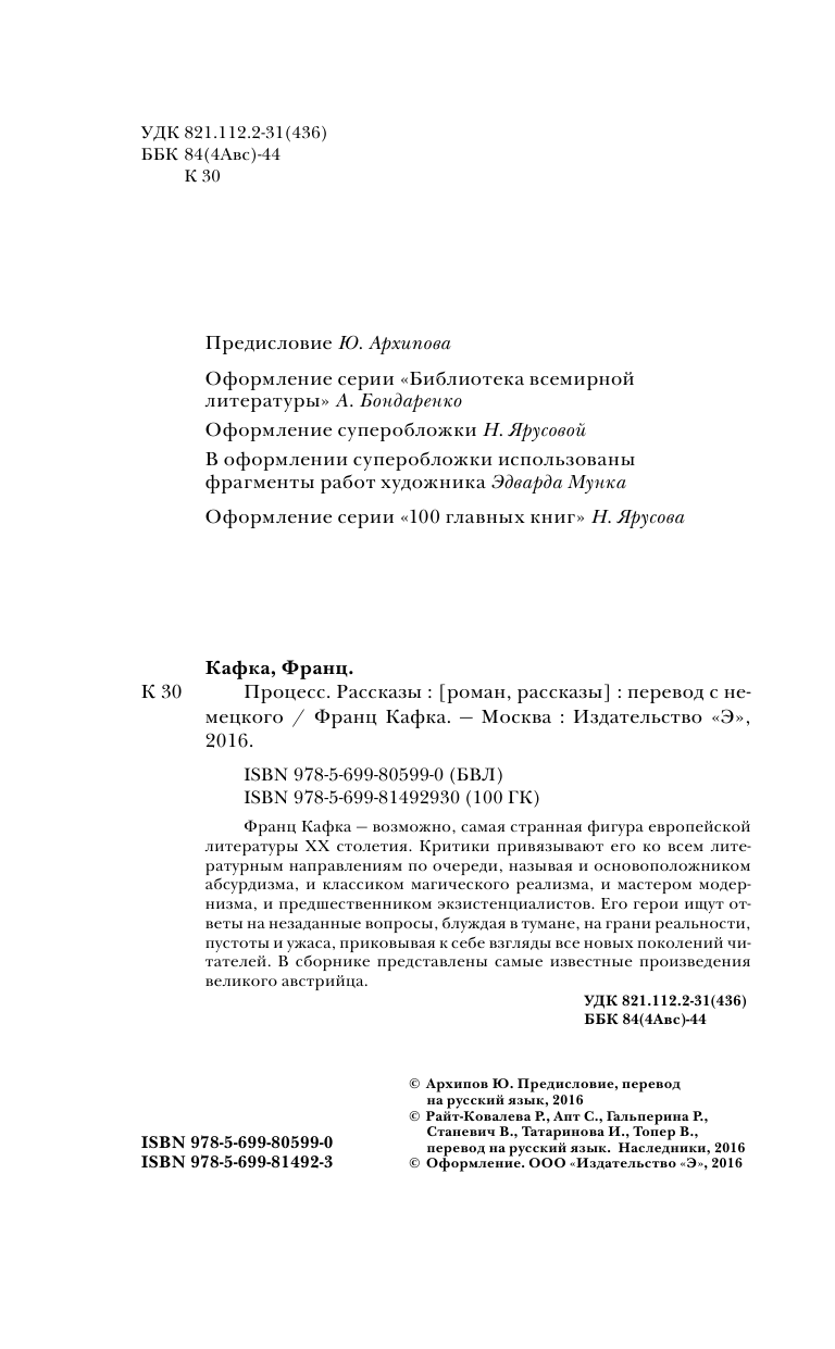 Книга: Процесс. Рассказы (Франц Кафка); ООО "Издательство "Эксмо", 2016