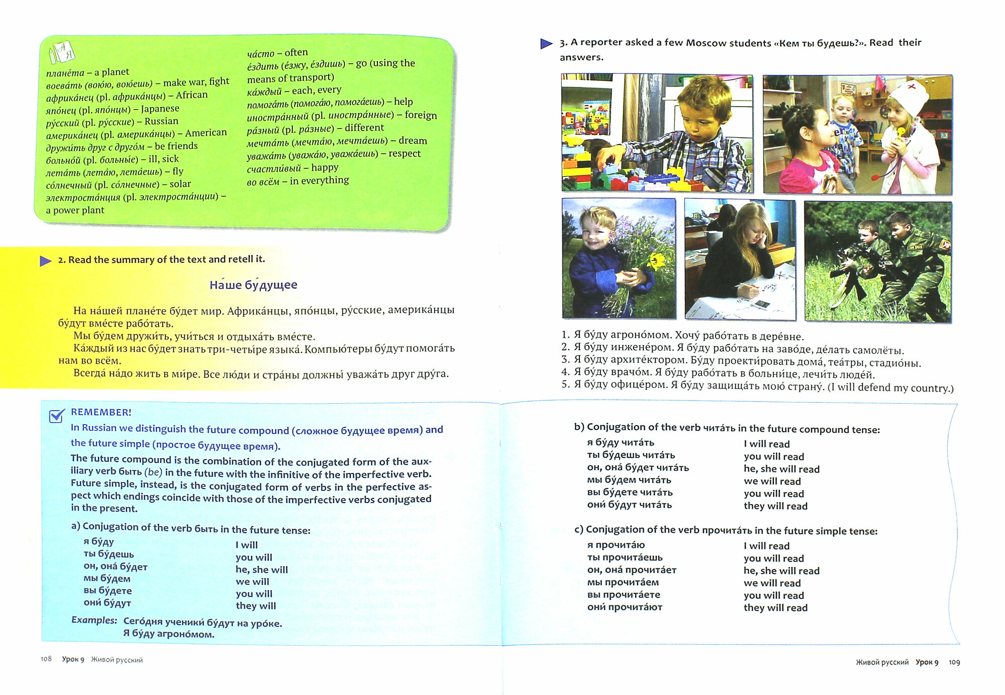 Учебник "Живой русский" адресован иностранным учащимся, владеющим английским языком. Он рассчитан на 150-180 часов занятий. Учебник охватывает основные аспекты русского языка, содержит информацию, актуальную для молодых людей, начинающих изучать русский язык. Специфика учебника состоит в том, что он ориентирован для школьного и курсового обучения в странах Африки.