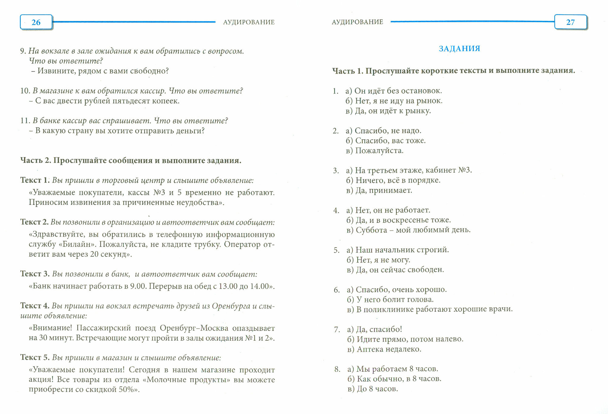 Данный практикум представляет собой блок тренировочных тестов и тестовых заданий, цель которых - контроль сформированности языковых навыков и коммуникативных умений. Адресован иностранцам, желающим сдать экзамен по русскому языку как иностранному на базовый уровень для иностранных граждан (для получения разрешения на работу в России).