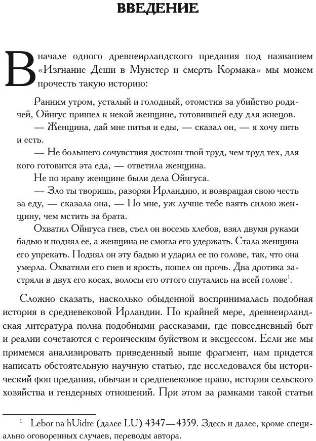 Монография написана специалистом своего дела, много лет занимающегося Ирландией, знающего язык и мифологию досконально. Это единственная русскоязычная монография, дающая достаточно полный научный взгляд на все стороны жизни Древнеирландского общества. Здесь нет истории, нет даже исторических экскурсов. Вся канва произведения построена именно на сравнительном анализе древнеирландских мифов и сказаний. Особенно интересны сравнительные характеристики ирландских сказаний с древнеиндискими текстами и русскими былинами. здесь автор на наглядных примерах показывает универсальность исторического процесса, его глубинные основы и истоки . также много места уделено принятию христианства и его параллельному мирному сосуществованию с остаточными явлениями друидических культов и традиционным укладом общества. Здесь, конечно же, много внимания уделено личности святого Патрика и его роли в становлении христианства в Ирландии.
