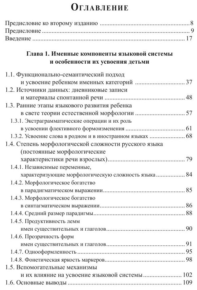 Книга представляет собой исправленную и дополненную версию издания 2011 года. Она посвящена описанию ранних этапов усвоения русскими детьми семантики и грамматики именных частей речи, которые являются основой первичной языковой системы ребенка. Исследование основано на качественном и количественном анализе данных спонтанной речи детей от начала речевой деятельности до 3-4 лет. Попутно проводится обследование речи родителей и устанавливается степень их влияния на процесс становления языка у ребенка. Автор учитывает современные теории изучения детской речи, в особенности теорию языка, основанную на употреблении, и теорию естественной морфологии.