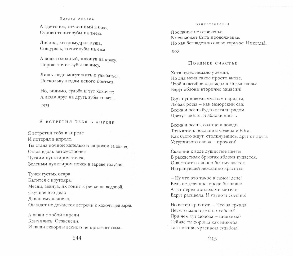 Я очень люблю стихртворения Э.Асадова. Ячитала его стихотворения в15лет и сейчас в 58!. Каждое его стихотворение восхищает, учит любить и быть любимыми, быть , а не казаться, быть чесными, добрыми, внимательными, это магия искренности, чистоты...Этот сборник— хороший подарок. Я выписала несколько разных сборников, чтобы можно было и дома и в с собой в дорогу взять, и подарить...Прочитайте :""Баллада о ненависти и любви", и вы будите плакать,"Девушка и лесовик"вы будите верить в чудо,"Я могу тебя очень ждать...", и вы будите восхищаться.! Сборник—отличный подарок!