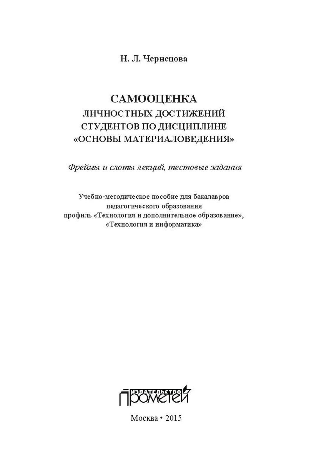 Самооценка личностных достижений по дисциплине "Основы материаловедения" (Чернецова Наталья Леонтьевна); Прометей, 2015