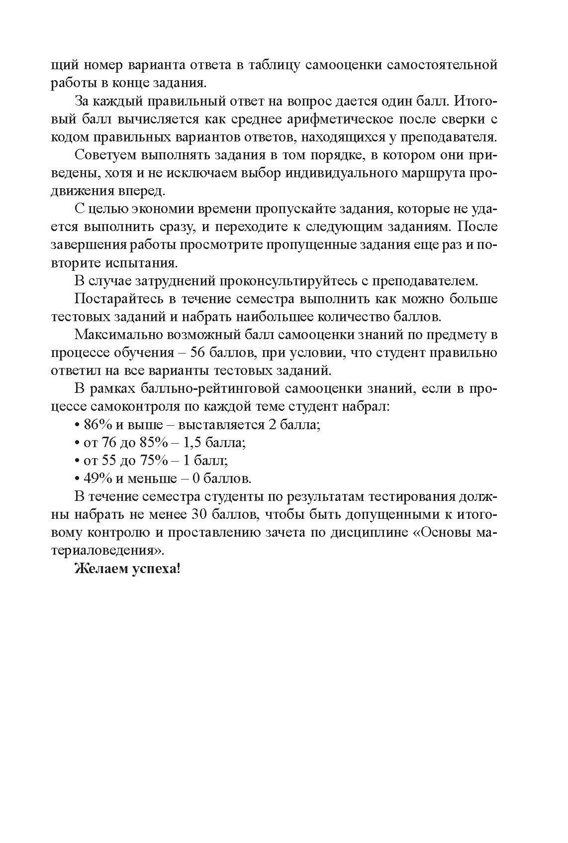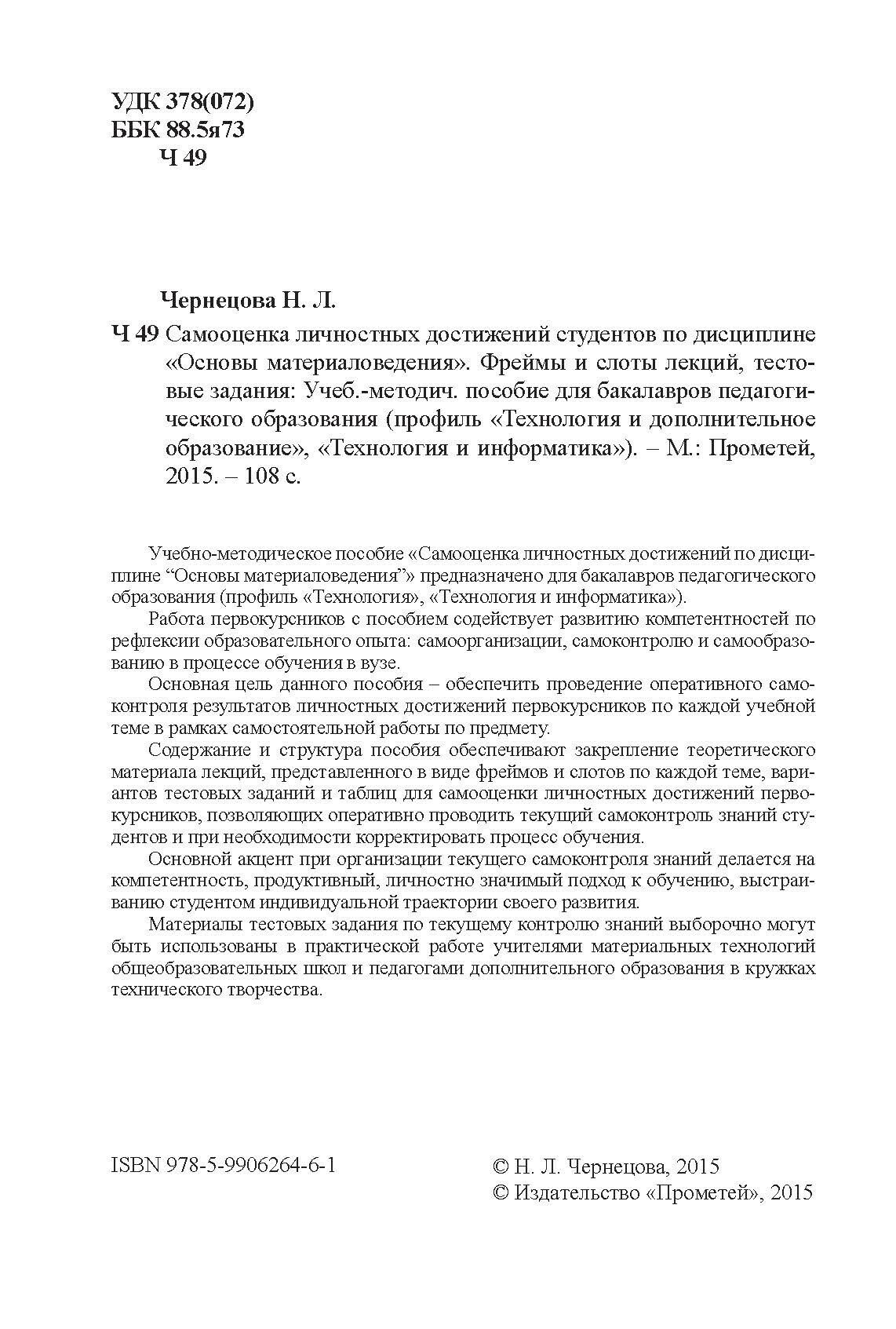 Учебно-методическое пособие "Самооценка личностных достижений по дисциплине "Основы материаловедения"" предназначено для бакалавров педагогического образования (профиль "Технология", "Технология и информатика").