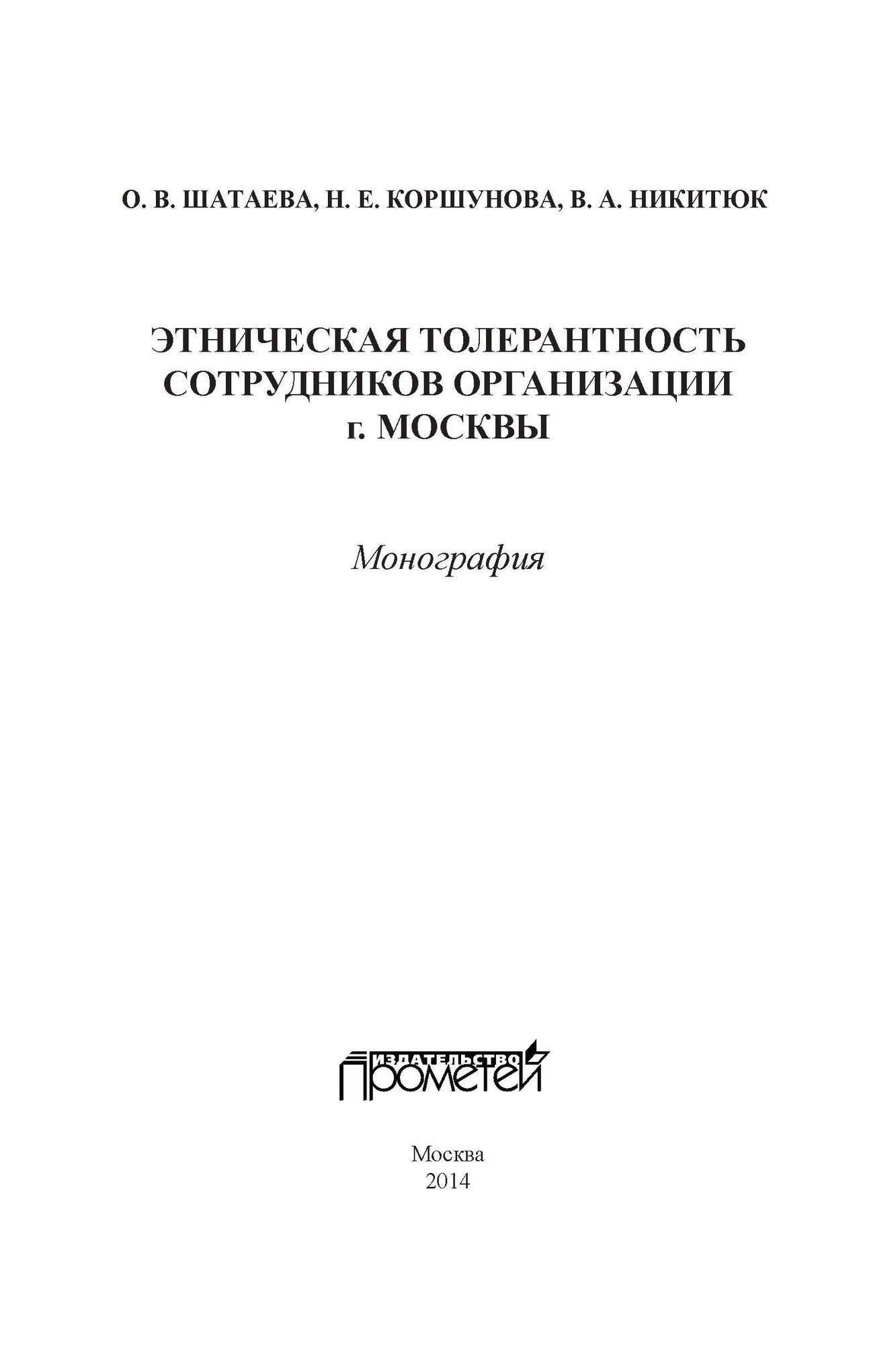 Этническая толерантность сотрудников организаций г. Москвы (В. А. Никитюк); Прометей, 2014