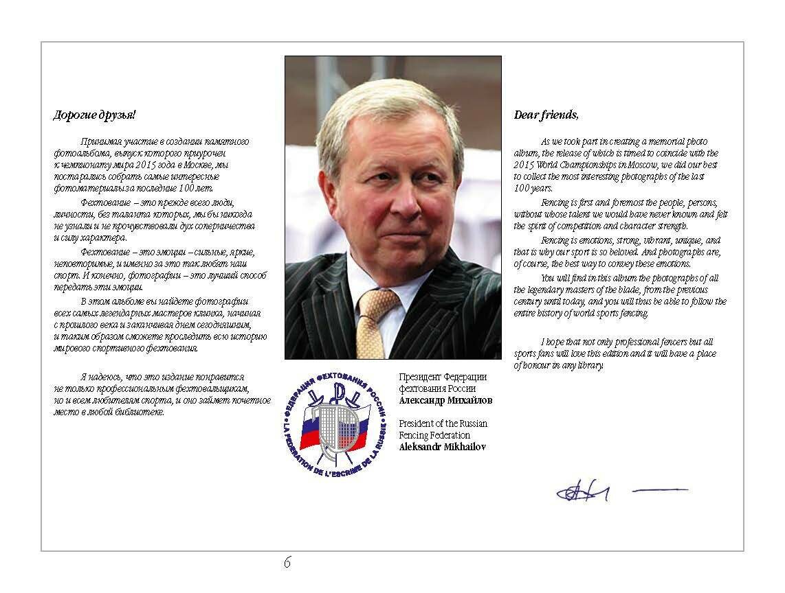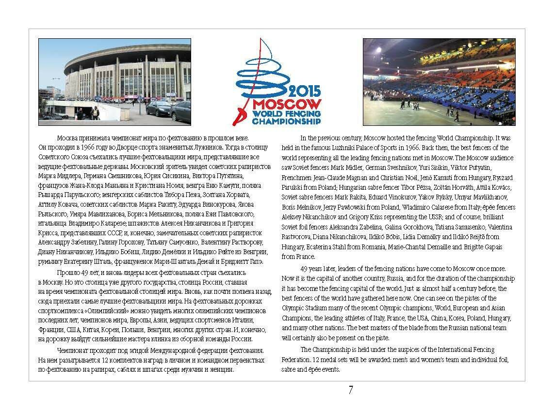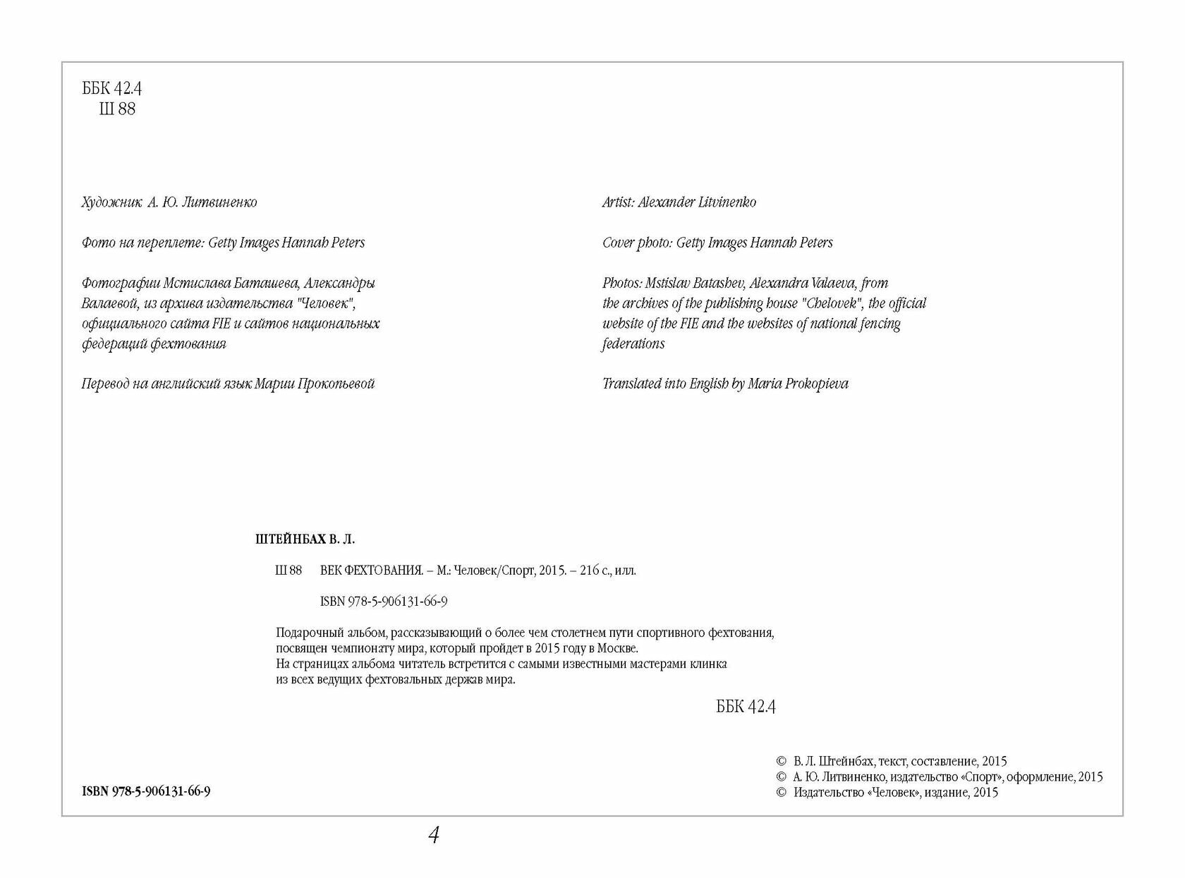 Подарочный альбом, рассказывающий о более чем столетнем пути спортивного фехтования, посвящен чемпионату мира, который пройдет в 2015 году в Москве. На страницах альбома читатели встретятся с самыми известными мастерами клинка из всех ведущих фехтовальных держав мира.