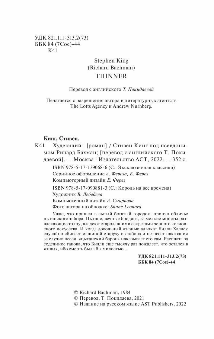 Книга: Худеющий (Кинг Стивен); ООО "Издательство Астрель", 2020