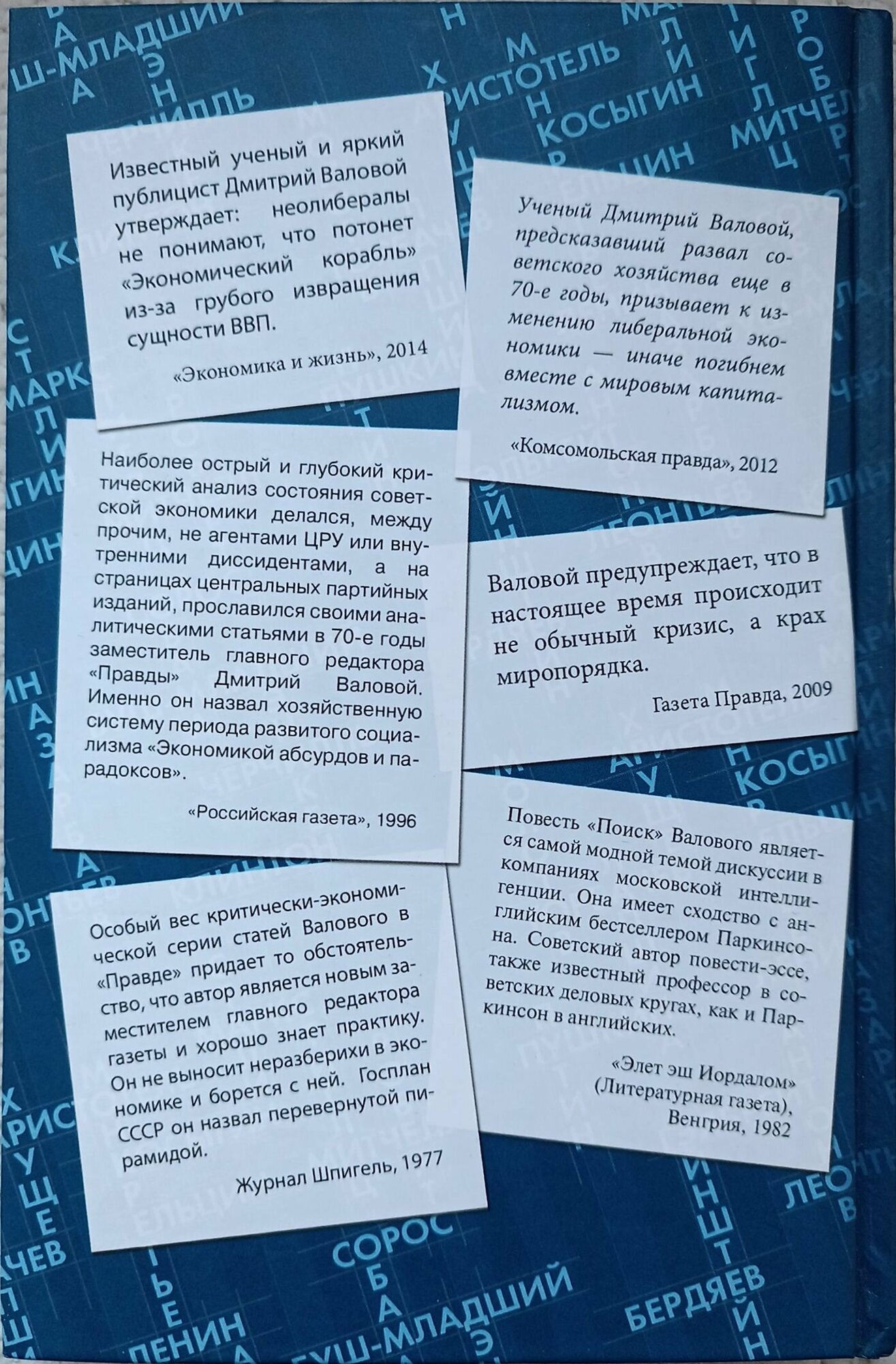 Эта книга – авторский взгляд на то, какой должна быть экономика (национальная да и мировая) для процветания общества. В наблюдаемых по ходу книги убеждениях автора прослеживается его симпатия к классической политэкономии и марксистскому экономическому учению; это проявляется, главным образом, в том, что Дмитрий Валовой всячески подчёркивает важность производительного труда для процветания общества и вред перекоса экономики в сторону сферы обращения (торговли, услуг, особенно финансовых).