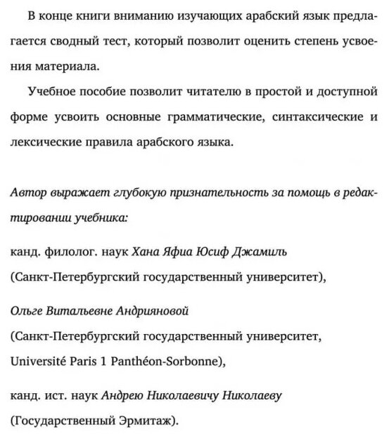 Предлагаемое учебное пособие позволяет в простой и доступной форме усвоить основные грамматические, синтаксические и лексические правила арабского языка. Оно предназначено для тех, кто только начал изучать арабский язык, но может использоваться и теми, кто находится на более продвинутом уровне для повторения пройденного материала.