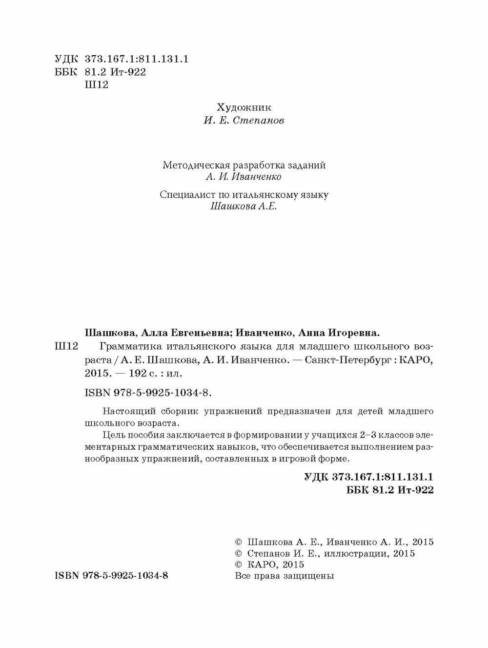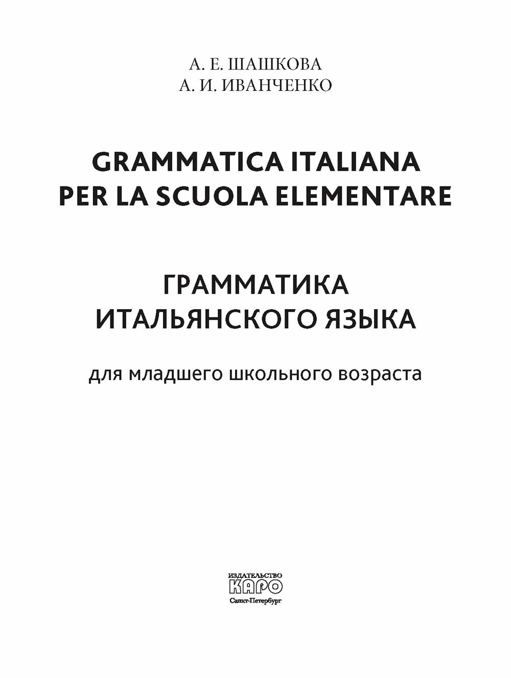 Итальянский язык. 2- 3 класс. Грамматика (Иванченко Анна Игоревна, Шашкова Алла Евгеньевна); Каро, 2015