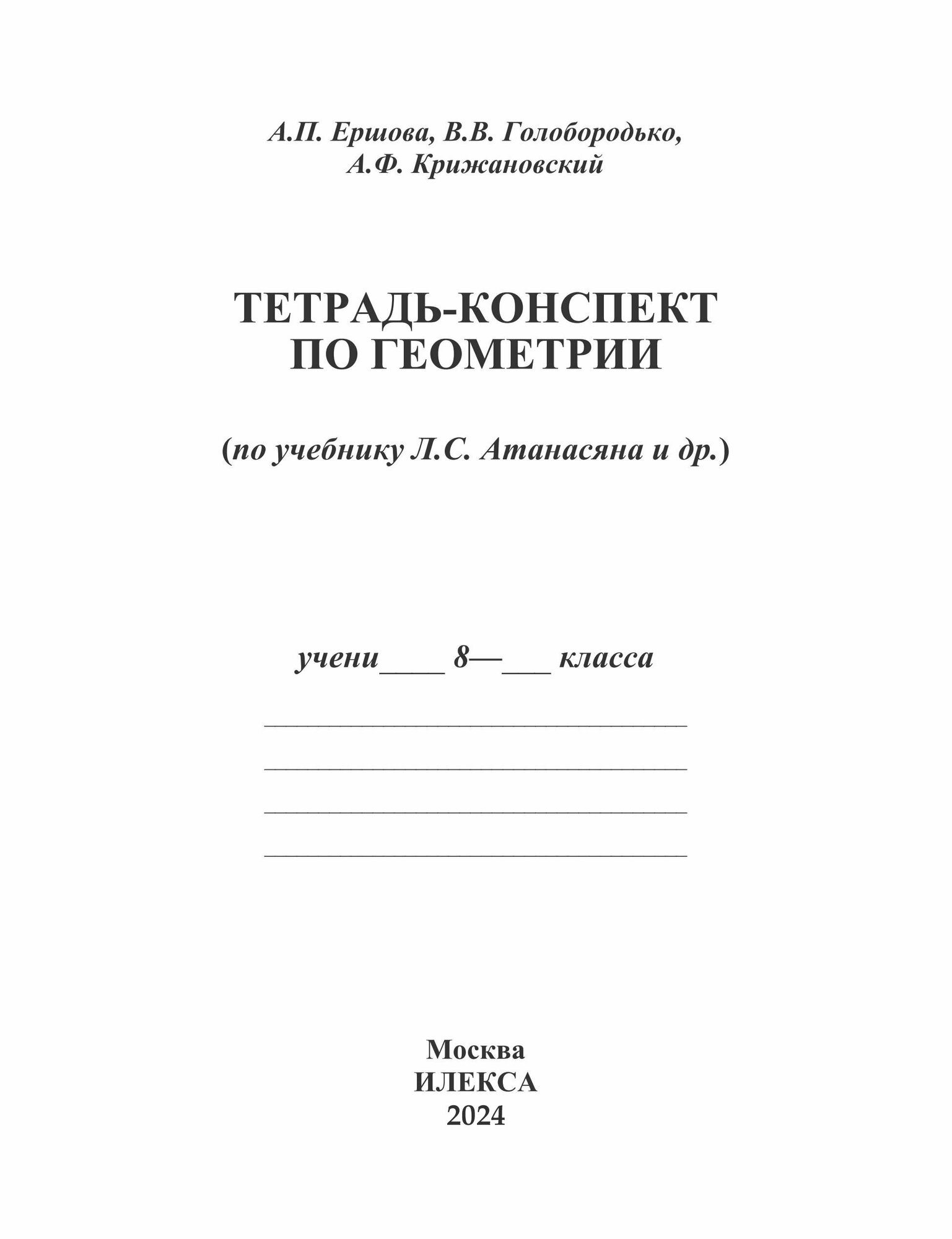 Геометрия. 8 класс. Тетрадь-конспект. По учебнику Л. С. Атанасяна и др. (Ершова Алла Петровна, Голобородько Вадим Владимирович, Крижановский Александр Феликсович); Илекса, 2024