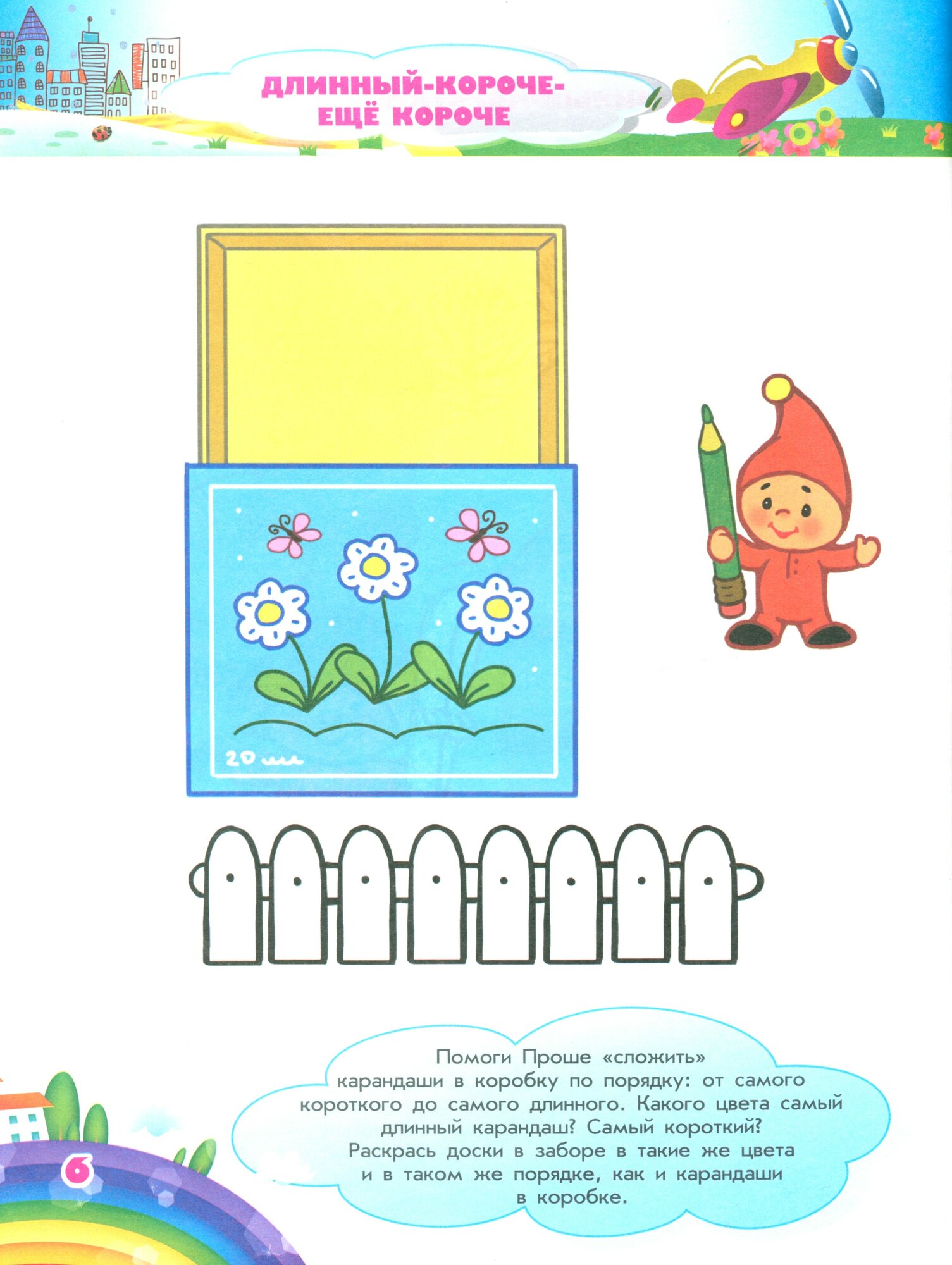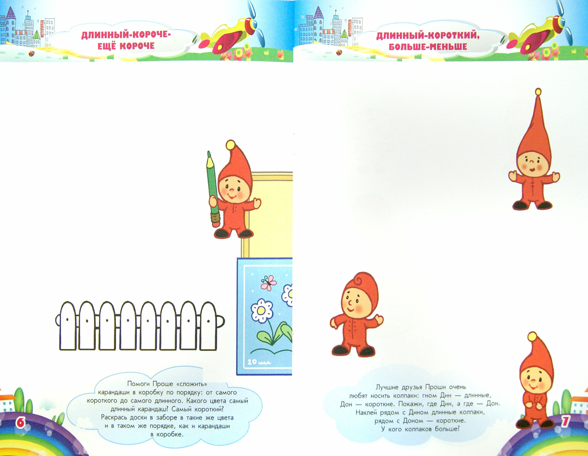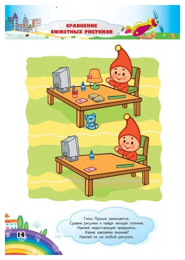 Издание поможет ребенку овладеть навыками сравнения предметов, усвоить понятия: "большой - маленький", "длинный - короткий", "тёмный - светлый" и т.д. Задания составлены в игровой форме. На каждой странице тетради малыша встречает гном Проша - главный персонаж всех тетрадей серии. В тетради вы найдете две страницы наклеек. Ребёнок не только сможет отвечать на вопросы и рисовать, но и наклеивать яркие картинки. Издание способствует развитию логического мышления, мелкой моторики рук, активного словарного запаса. Тетрадь предназначена для детей от трех лет.