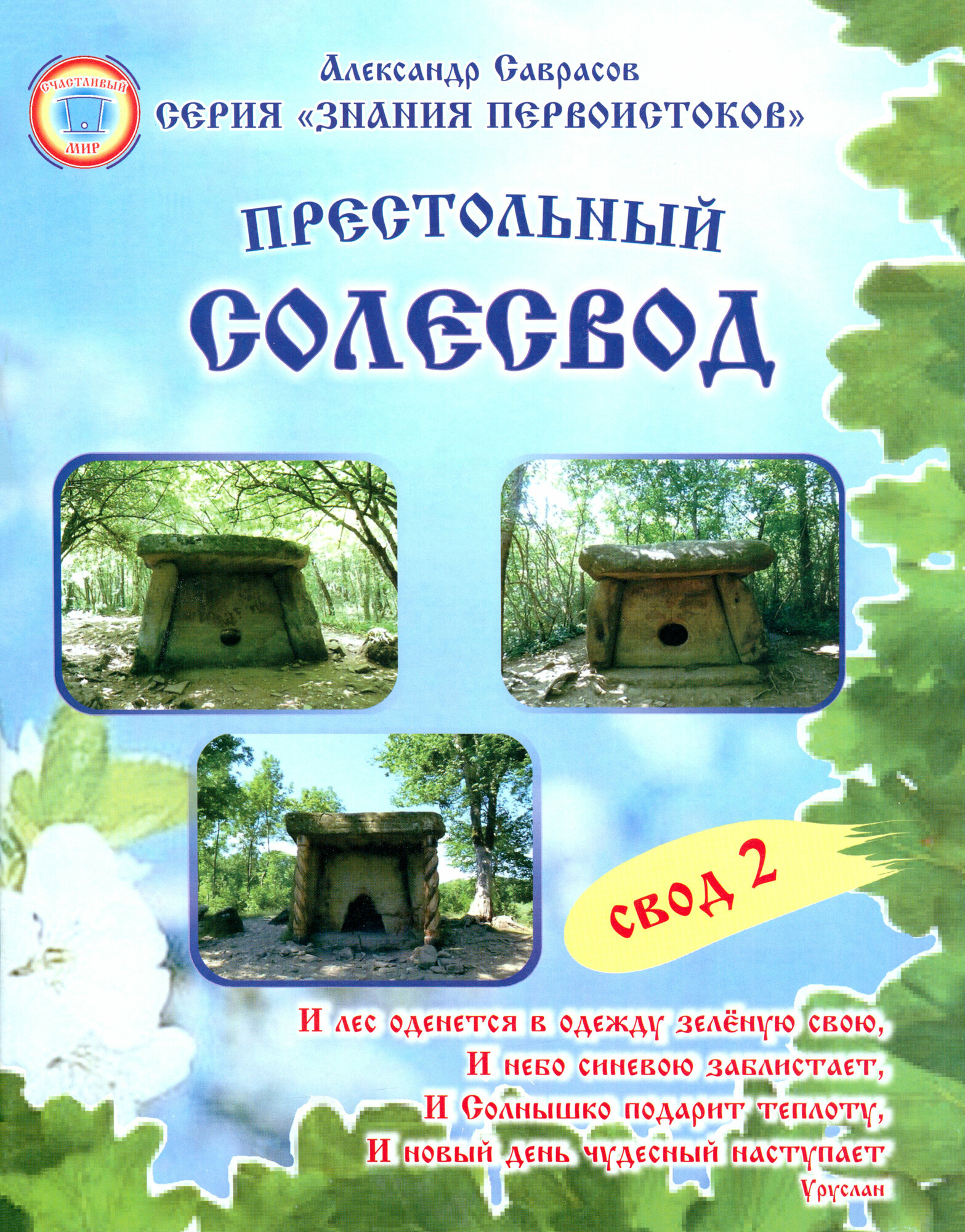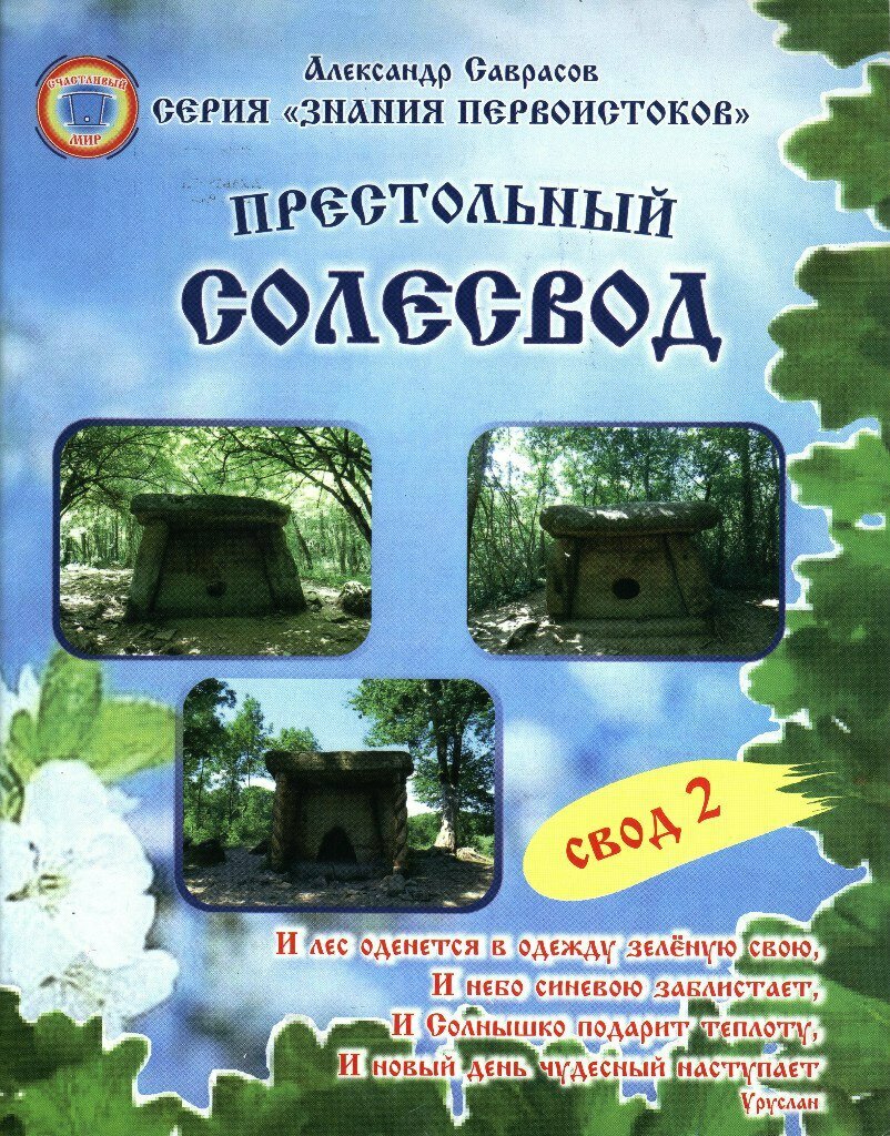Второй Солесвод Александра Саврасова. Традиционно информация от Духов Дольменов о том, как жили раньше, быль Руси - в этом номере о Соловецких островах. О планетах, которые изучали Волхвы Руси. И, конечно же, ответы на вопросы читателей о бардах, музыкальных инструментах, о молоке и дрожжах, о воде. О чакрах. Очень интересное издание, можно перечитывать сто раз и каждый раз раскрывать в нем что-то новое, упущенное ранее!