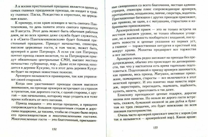 Юлия Сысоева "слышала звон, да не знает, где он". Восхищаться этой книжицей может либо человек, только что перешагнувший порог храма, а потому "всеядный", либо человек, который никогда ничего серьезнее и качественнее Дарьи Донцовой не читал. Ни языка, ни стиля, ни содержания. НИЧЕГО. Никаких тайн и загадок духовного сословия автор не раскрывает. Да и тайны с загадками все надуманы. Стиль книжки напоминает выражение: "одна бабка другой сказала". Юлия Сысоева относится к духовному сословию только по мужу, ни в каких духовных школах она не обучалась, к церкви имеет самое опосредованное отношение. Дочка бизнесмена - миллионера, пишущая байки на околоцерковную тематику, пользуясь посмертной известностью своего мужа - стоит ли такое читать - решать вам. Я не смогла. Тем более когда есть прекрасные книги на эту же тему Н. Н. Соколовой