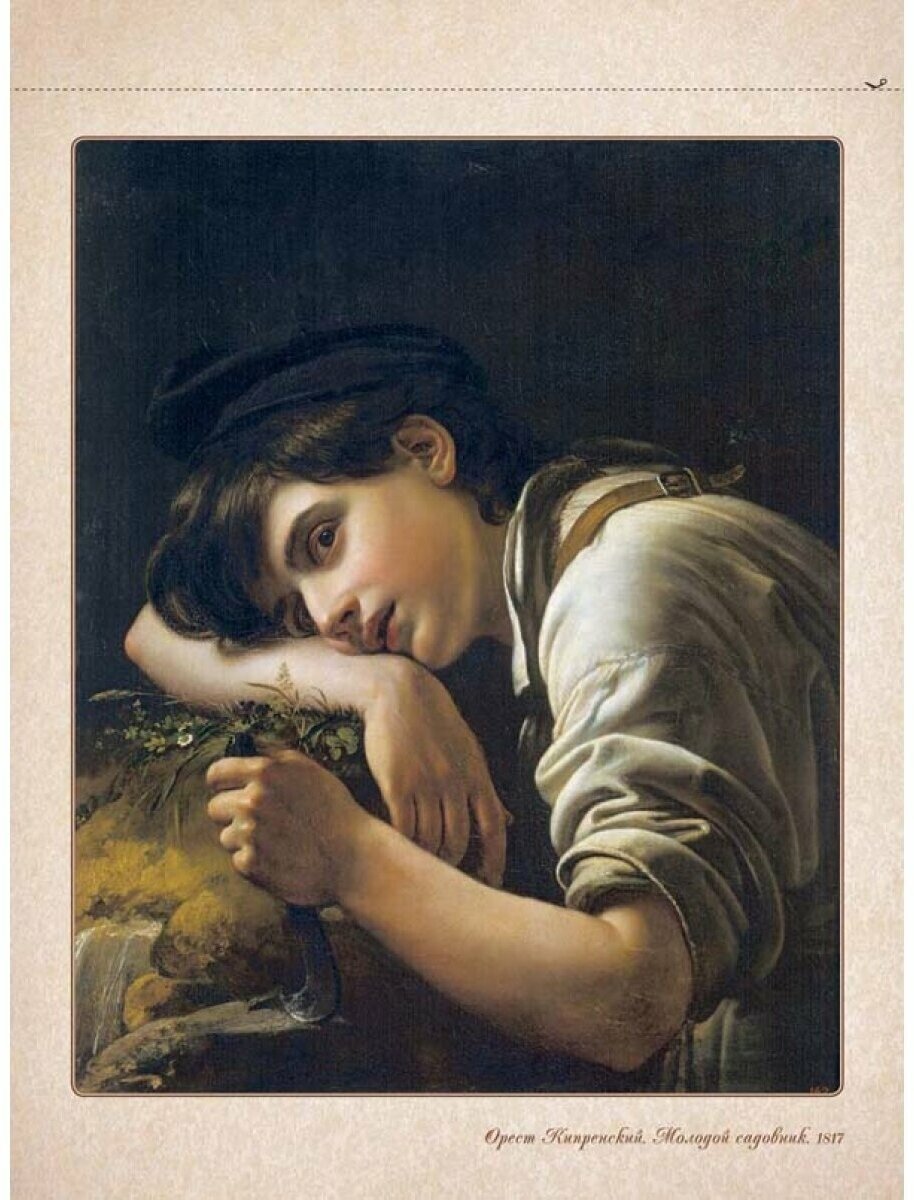 Предлагаем любителям живописи подборку репродукций восьми лучших картин знаменитого русского художника Ореста Кипренского. Исполненные на высоком полиграфическом уровне, они станут своеобразным "музеем на дому". Иллюстрации картин следуют одна за другой, их можно разъединить (для этого предусмотрена линия отреза), и тогда на стенах дома, класса, актового зала появится экспозиция полотен одного художника или сразу нескольких. Не поленитесь: на уроке труда для каждого из них можно смастерить строгое паспарту или нарядную рамочку - и путешествие по залам музея можно начинать. Список репродукций: На обложке: О.А. Кипренский. Бедная Лиза. 1827 Список репродукций картин О.А. Кипренского: Девочка в маковом венке с гвоздикой в руке. 1819 Молодой садовник. 1817 Портрет А.С. Шишкова. 1825 Портрет Авдотьи Ивановны Молчановой с дочерью Елизаветой. 1814 Портрет лейб-гусарского полковника Евграфа Владимировича Давыдова. 1809 Портрет Олимпиады Александровны Рюминой. 1826 Портрет поэта Александра Сергеевича Пушкина. 1827 Портрет танцовщицы Екатерины Александровны Телешевой в роли Зелии. 1828