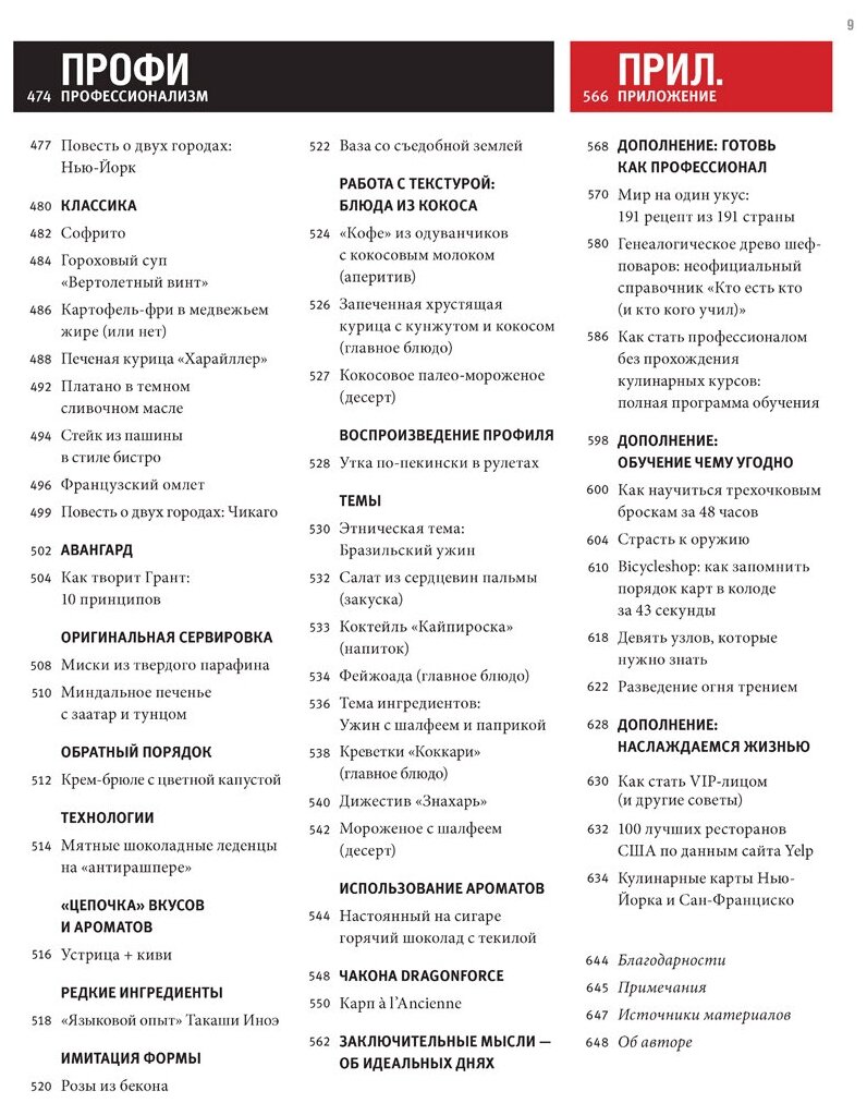 Феррис – молодой чувак и пишет свои книги для таких же молодых и продвинутых людей, как он сам. Благодаря ему понимаешь, что года учебы в университете не сделают из тебя гения и, тем более не сделают твою жизнь проще и счастливей. Все это ты можешь сделать сам и Феррис дает четкие установка – как! Что касается кулинарного аспекта, то я заценил многие фишки, например, способы нарезки (в жизни не подумал бы, что их столько!), теперь тренируюсь нарезать как настоящий шеф!