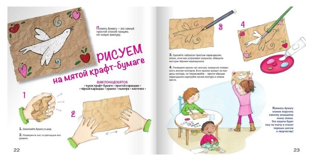 Не знаете как отвлечь ребенка от компьютера или телевизора? Купите книги этой серии, не пожалеете. Оказывается поверхностью для рисования может стать все, что угодно: фольга, наждачная бумага, камни, листья, крышки от бутылок, ткань, пенорезина, стекло и т.д. и т.п. 16 уроков - 16 занятых творчеством вечером, а если повезет и возникнет интерес к какому-то способу, то и больше.Будет интересно не только детям, но и взрослым.