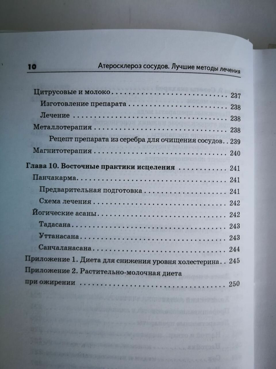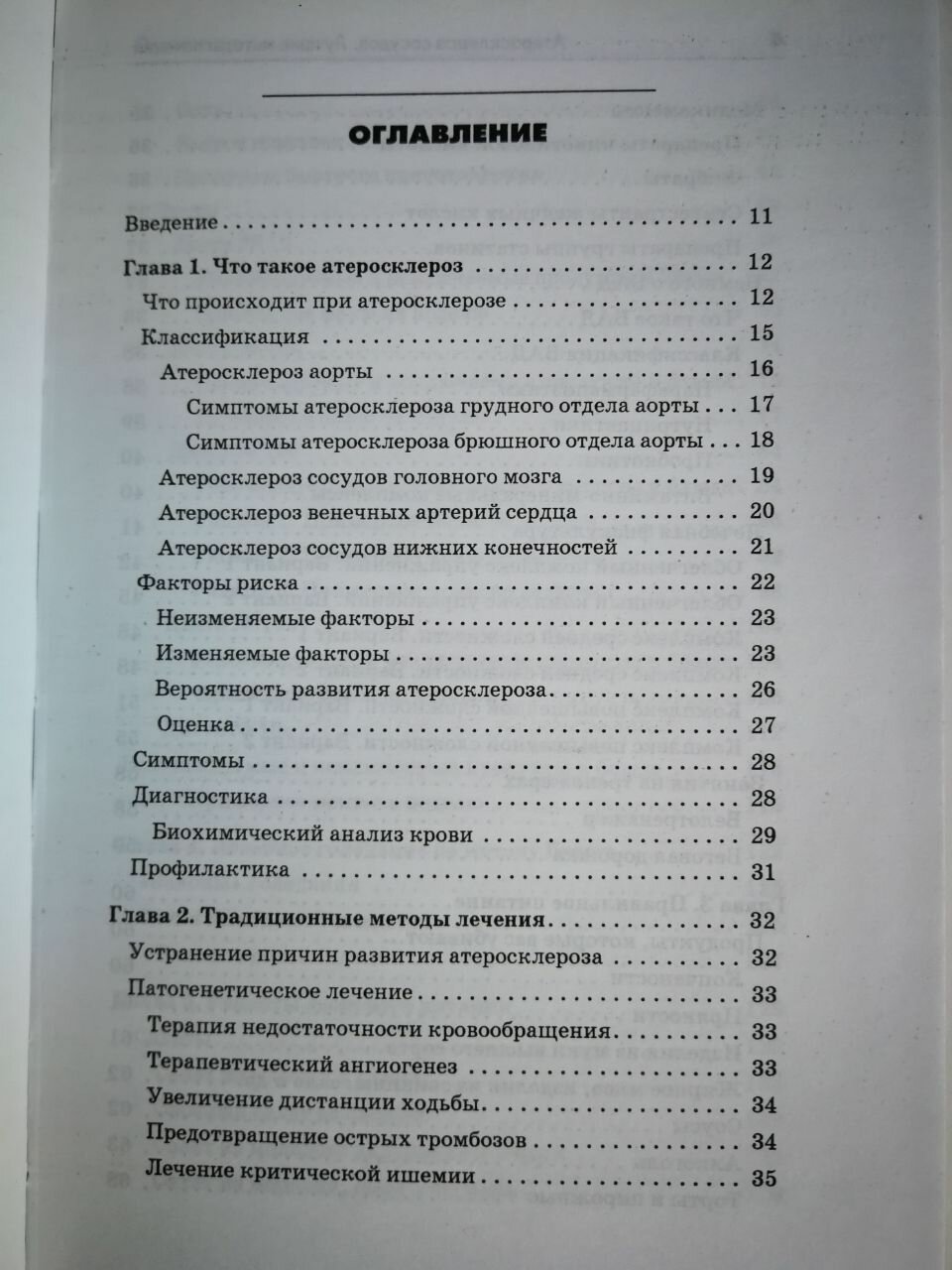 Атеросклероз это хроническое заболевание артерий эластического и мышечно-эластического типа, возникающее вследствие нарушения липидного и белкового обмена и сопровождающееся отложением холестерина и некоторых фракций липопротеидов в интиме сосудов. Отложения формируются в виде атероматозных бляшек. В книге речь идет как о стадиях болезни, так и о симптомах, а также биохимическом анализе крови и показателях свидетельствующих об атеросклерозе (прилагаю таблицу с данными в сканах страниц). Далее речь идет как о традиционных способах лечения, так и о БАДах, кроме того много времени уделяется правильному питанию (приведены диеты и рецепты).