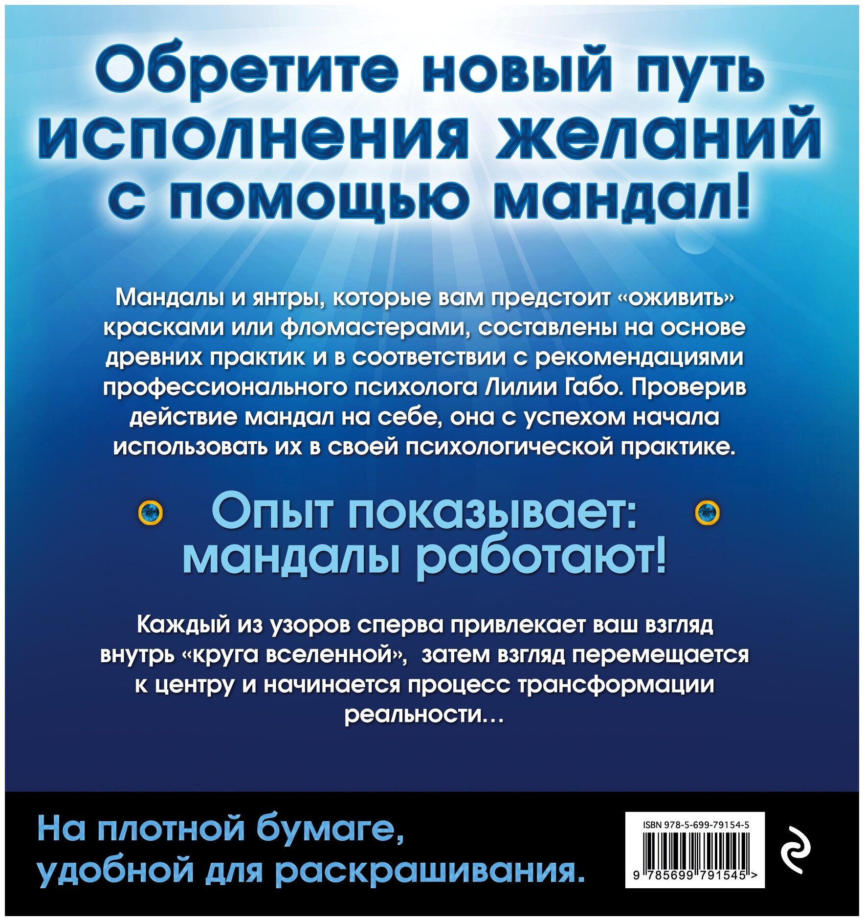Перед вами книга, которая поможет освободить заблокированную энергию, придать сил, избавиться от страха, стресса, депрессии, помочь при бессоннице, снять напряжение, решить внутренние конфликты. Раскрашивание мандал, каждая из которых содержит в себе действенную целительную формулу, каким-то непостижимым образом пробуждает наши внутренние ресурсы. Под руководством опытного специалиста по позитивной психологии Лилии Габо вы можете начать работу с мандалами прямо сейчас. Каждый из узоров сперва привлекает ваш взгляд как бы внутрь "круга вселенной". затем взгляд перемещается к центр, на его поверхность и начинается процесс трансформации реальности...
