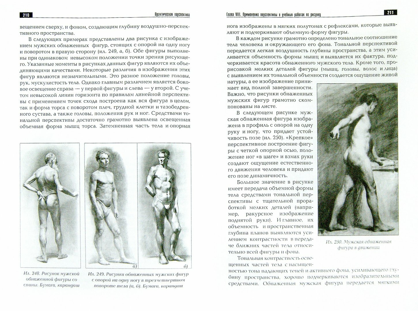 Новым материалом в книге является изложение практических способов применения перспективы в ландшафтном и средовом дизайне, архитектурном проектировании, на пленэре, а также на занятиях по рисунку и живописи при выполнении с натуры гипсовых слепков (орнаментов), головы и фигуры человека, натюрмортов. Пособие содержит 438 различных иллюстраций, представленных в черно-белом и цветном исполнении (рисунки, этюды, наброски, эскизы, чертежи).
