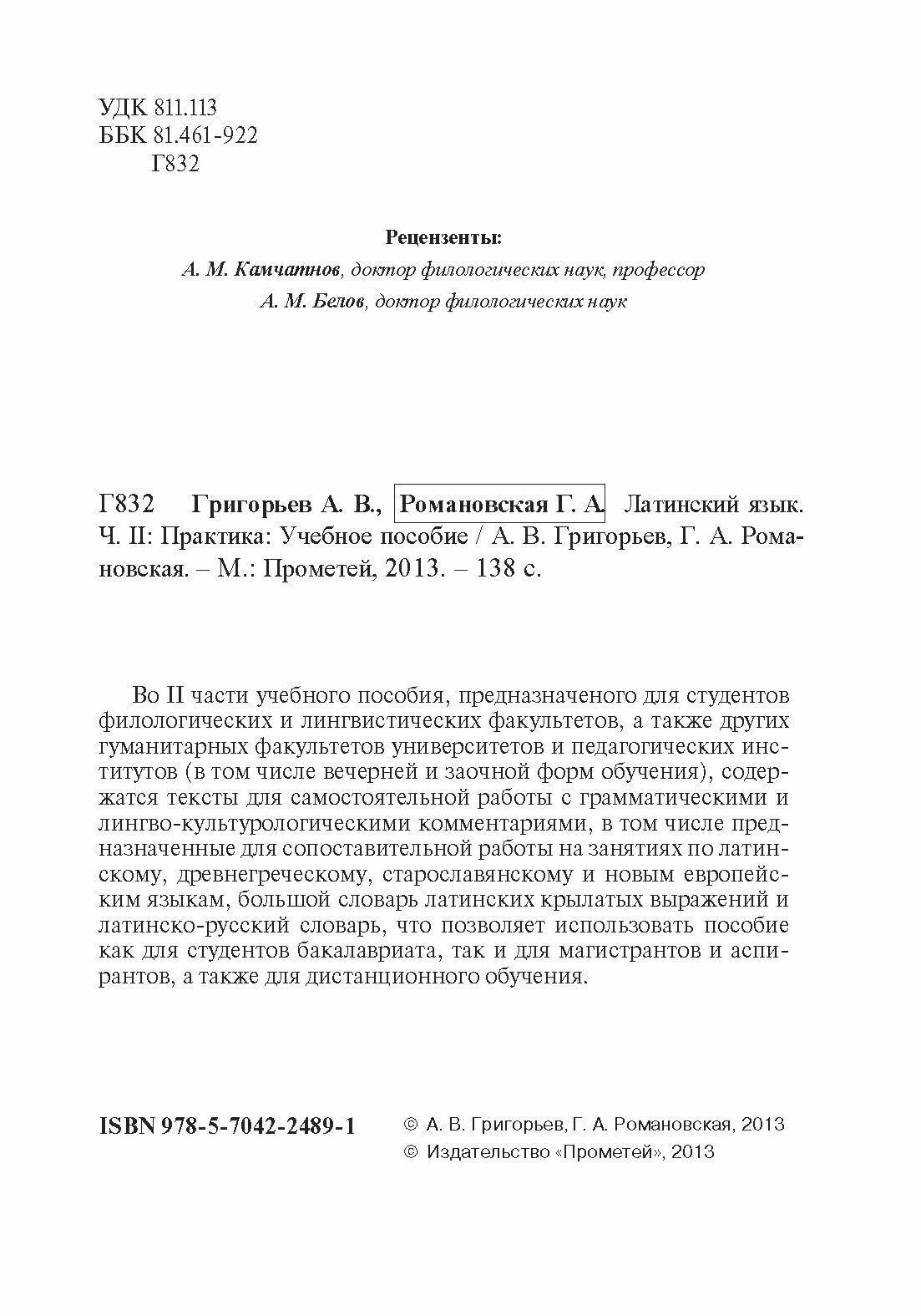 На сегодняшний день товар «Книга: Латинский язык. Часть II. Практика. Учебное пособие (Андрей Владимирович Григорьев); Прометей, 2013» можно купить с кешбеком в 3 магазинах: ЛитРес, Яндекс.Маркет, Читай-город