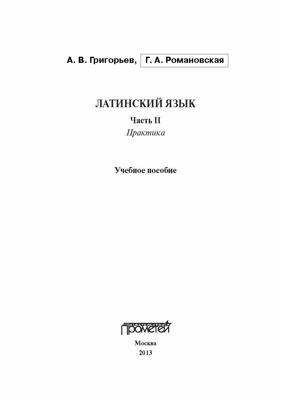 Латинский язык. Часть II. Практика. Учебное пособие (Андрей Владимирович Григорьев); Прометей, 2013