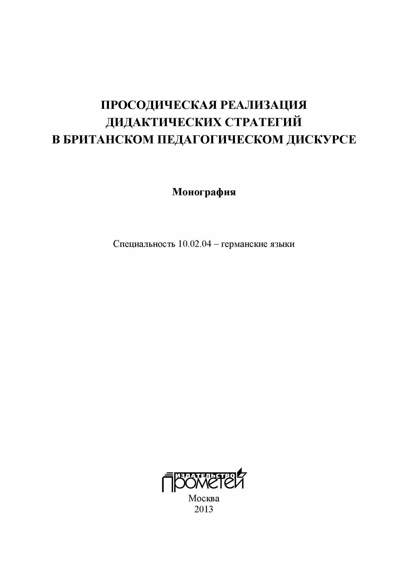 Просодическая реализация дидактических стратегий в британском педагогическом дискурсе (М. Ю. Кушнир); Прометей, 2013