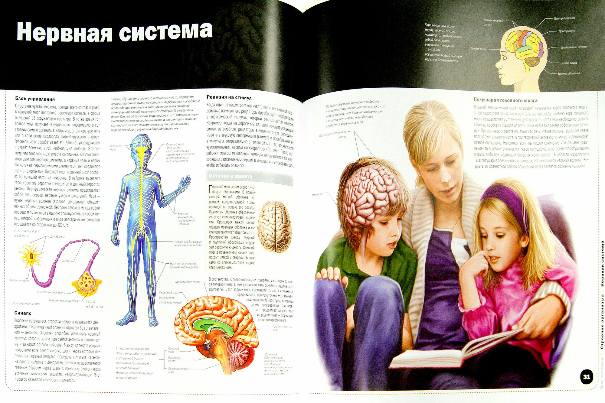 С первых дней жизни ребёнок начинает познавать окружающий мир с помощью своих органов чувств, и его разум при этом активно развивается. Разные звуки, ароматы, формы и краски, прикосновения, соединяясь, становятся ощущениями, связанными с определёнными людьми или предметами. Первое, что запечатлевает мозг младенца, -лицо и голос матери. Он узнаёт её также по запаху и нежным объятиям, дающим теплоту и безопасность. Позже малыш учится издавать осознанные звуки, произносить слова и фразы, С помощью родителей он делает первые неуверенные шаги, а затем уже ходит без поддержки. Подрастая, маленький человек становится всё более и более независимым, его знания о мире расширяются, он учится обращаться с разнообразными предметами и свободно управлять своим телом. Однако человеческий организм - необычайно сложное соединение множества систем и органов, жизнедеятельность которых регулируется нервной и эндокринной системами. Чтобы поддерживать его слаженную работу, недостаточно просто вести здоровый образ жизни: есть сбалансированную пищу, заниматься регулярными физическими упражнениями и полноценно отдыхать. Нужно знать, как устроен наш организм, каковы функции каждой его клетки, как он реагирует на воздействия окружающего мира, как борется с болезнями и стрессовыми ситуациями. Эта книга, с её уникальными 3D-иллюстрациями, посвятит вас во все тайны вашего тела. С ней вы совершите воображаемое путешествие в загадочный внутренний мир человеческого существа - самого удивительного творения в мире.