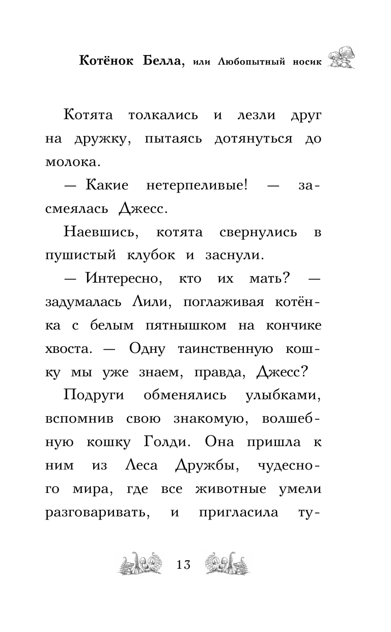 Дейзи Медоус - автор более ста книг для детей, среди которых серия Rainbow Magic - всемирный бестселлер о приключениях фей. Представляем вашему вниманию ее новый проект! Лили и Джесс - лучшие подруги, они обожают животных и даже помогают в ветклинике. Однажды девочки знакомятся с необычной кошкой Голди, которая привела их в волшебное место – Лес Дружбы, где все животные умеют разговаривать. С этого дня приключения следуют одно за другим! Лили и Джесс подружились с котенком Беллой Когтилло, которая мечтает стать знаменитой исследовательницей. А пока жажда приключений привела Беллу в таинственное подземелье, где по стенам мечутся тени и разносится зловещий хохот. Лили и Джесс поспешили на выручку котенку – но сначала надо найти вход в подземелье…