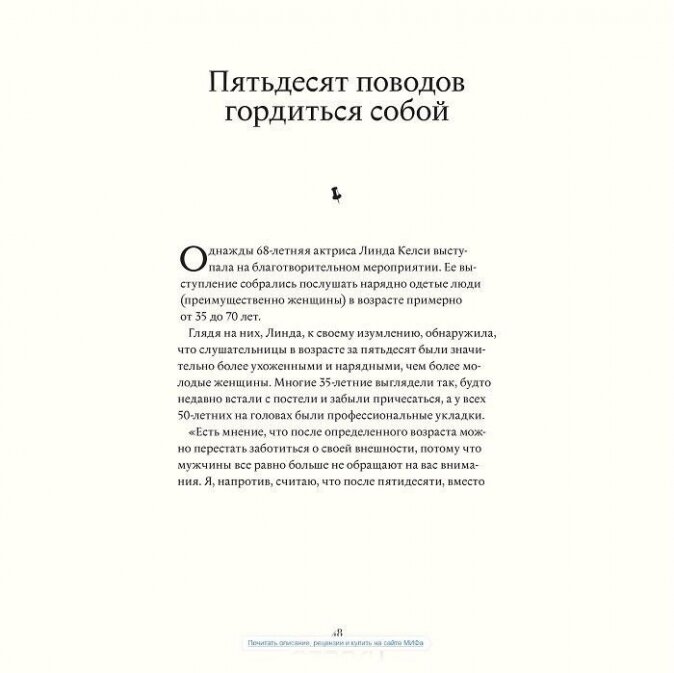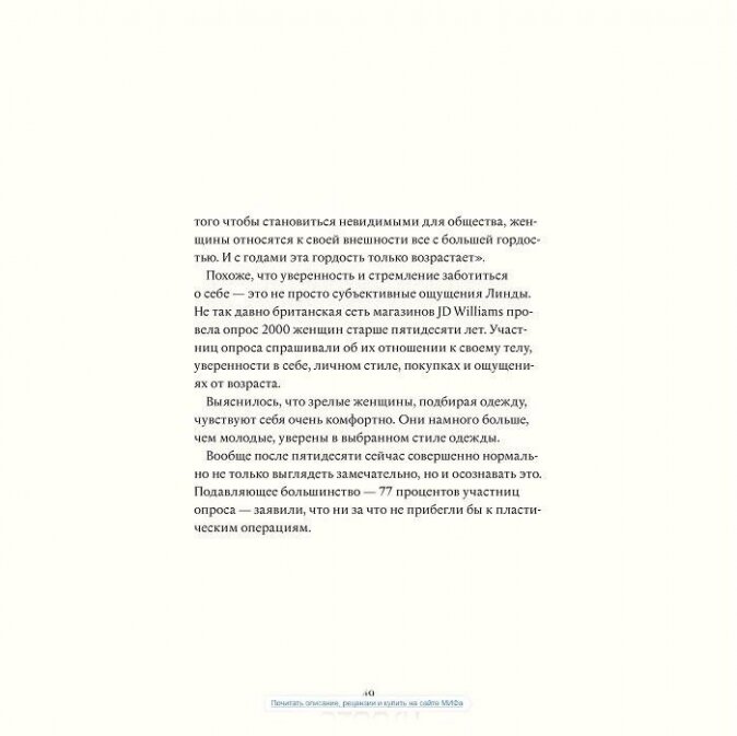 Эта книга о людях, которые не попались в ловушку запретов и после 50 лет живут полной жизнью. Они перестали быть невидимками - наоборот, почувствовали в себе уверенность и настоящую красоту, которую не боятся показать миру.