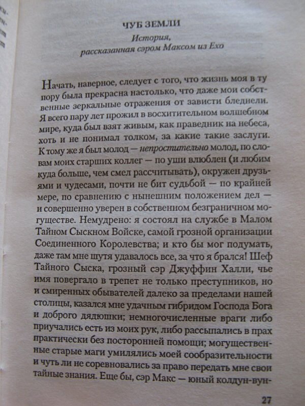Хорошая книга - нескучный вечерС удовольствием прочитала еще одну (а точнее даже две:)) истории про волшебный город Ехо и Мир в котором он находится. Когда я читаю интересную книжку мне всегда хочется побыстрее узнать, что будет дальше, и в то же время хочется чтобы книга подольше не кончалась. Поэтому, было приятно узнать что эта книга все про теже старые-добрые времена, когда сэр Макс еще подолгу "торчал" в Ехо.