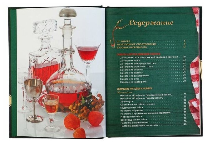 Книгу покупали в подарок любителю самогоноварения. Нам понравилось красивое оформление - книгу не стыдно подарить! А друзья оценили содержимое - там рецепты не только самогона и настоек, но и для хозяйки нашлись рецепты компотиков, кваса и других безалкогольных напитков.Рецепты не избиты, и не сложные - книга не будет лежать на полке. Это достойный подарок для всей семьи!